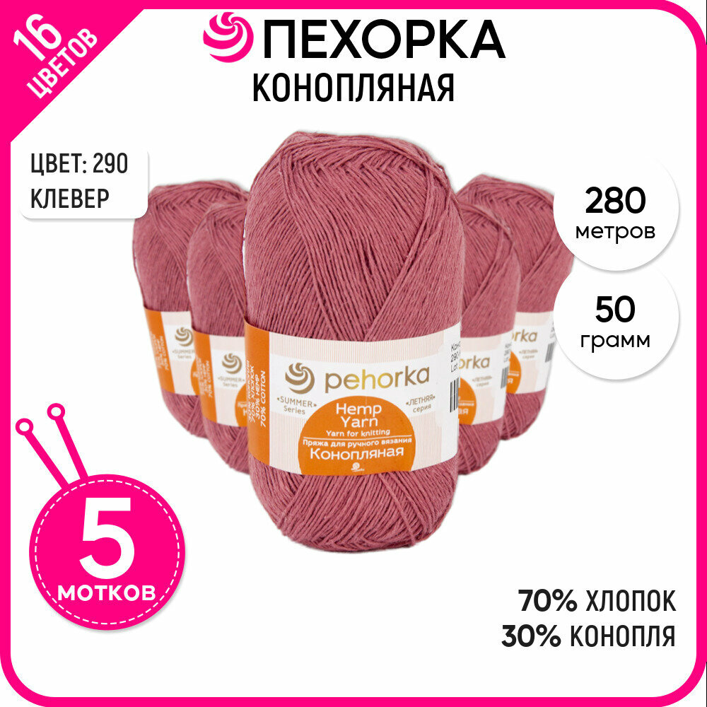 Пряжа для вязания Пехорка 'Конопляная', 50г, 280м (70% хлопок, 30% конопля) (290 клевер), 5 мотков