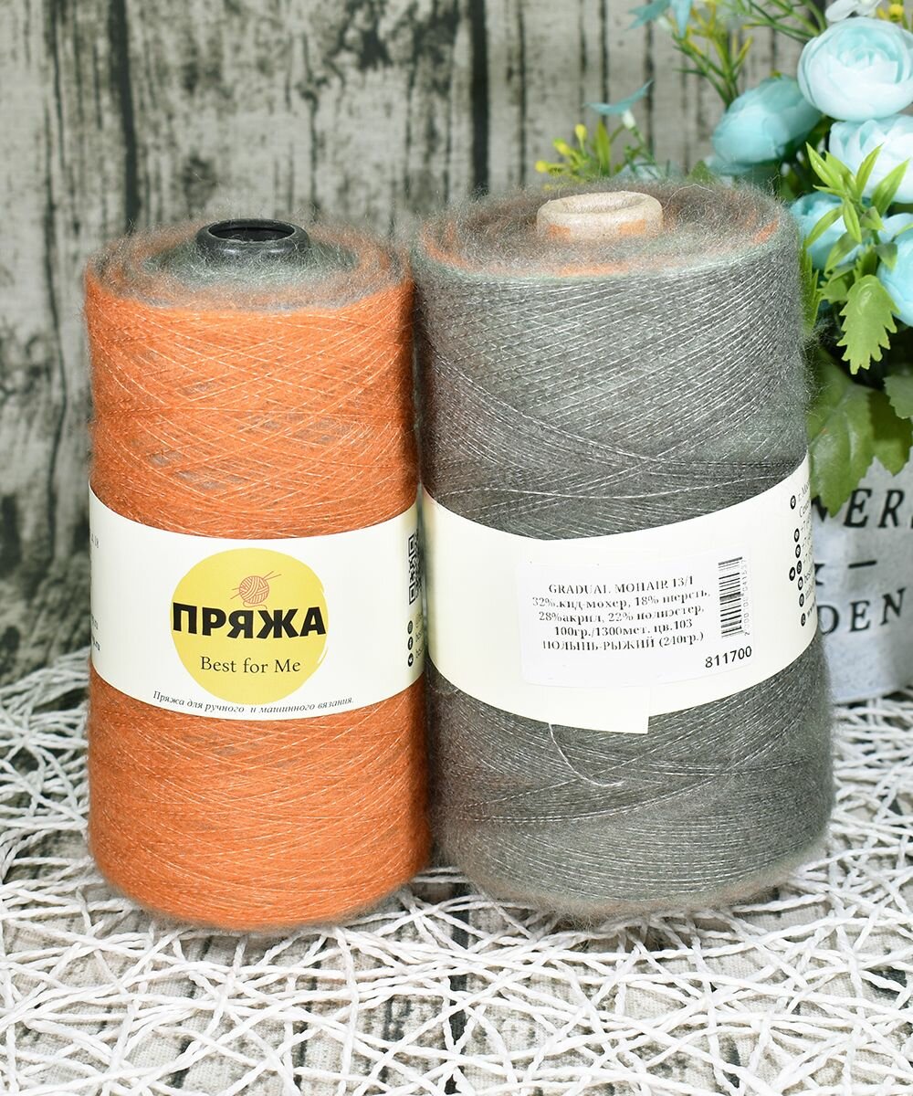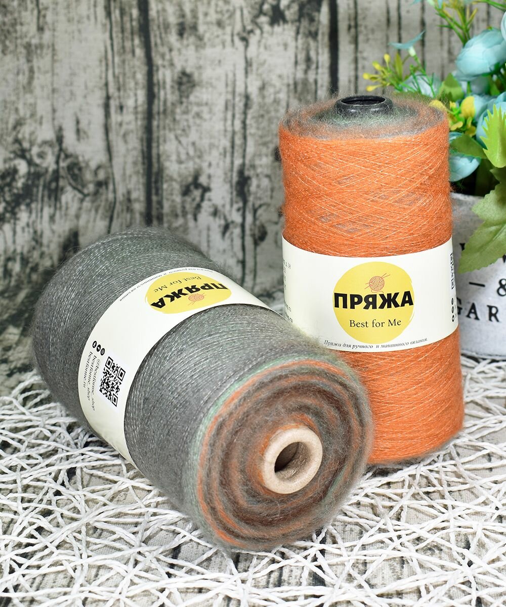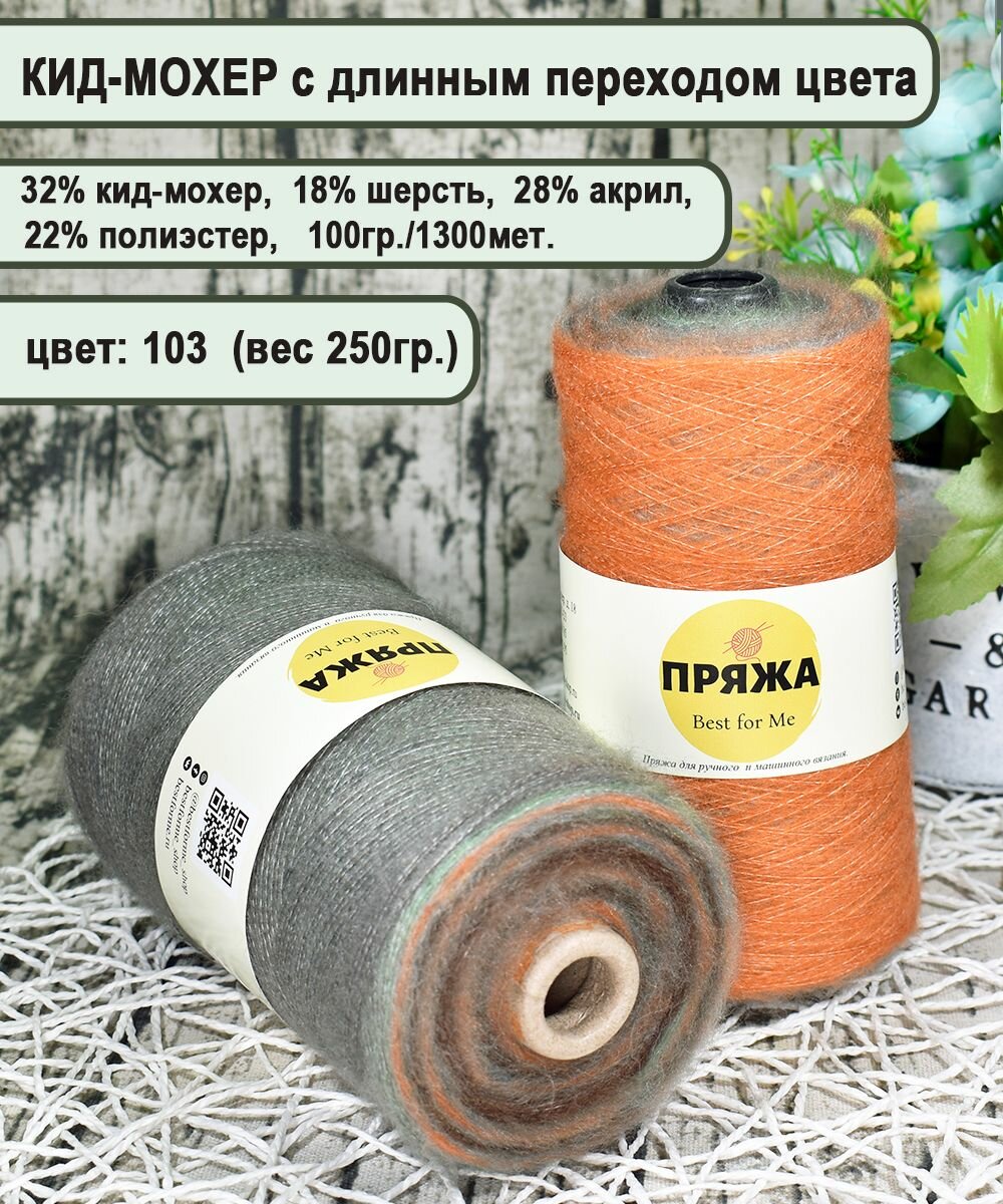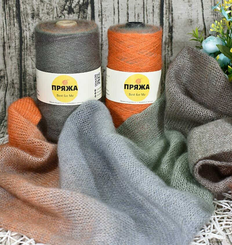 СохранитьПряжа на бобине Кид-мохер с длинным переходом цвета цв.103 полынь-рыжий (250гр.) интересное: