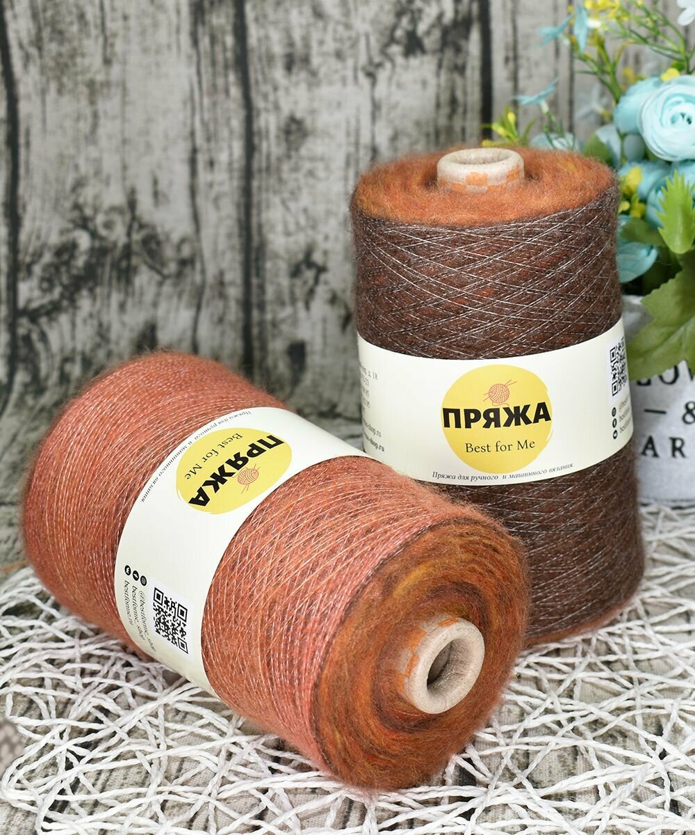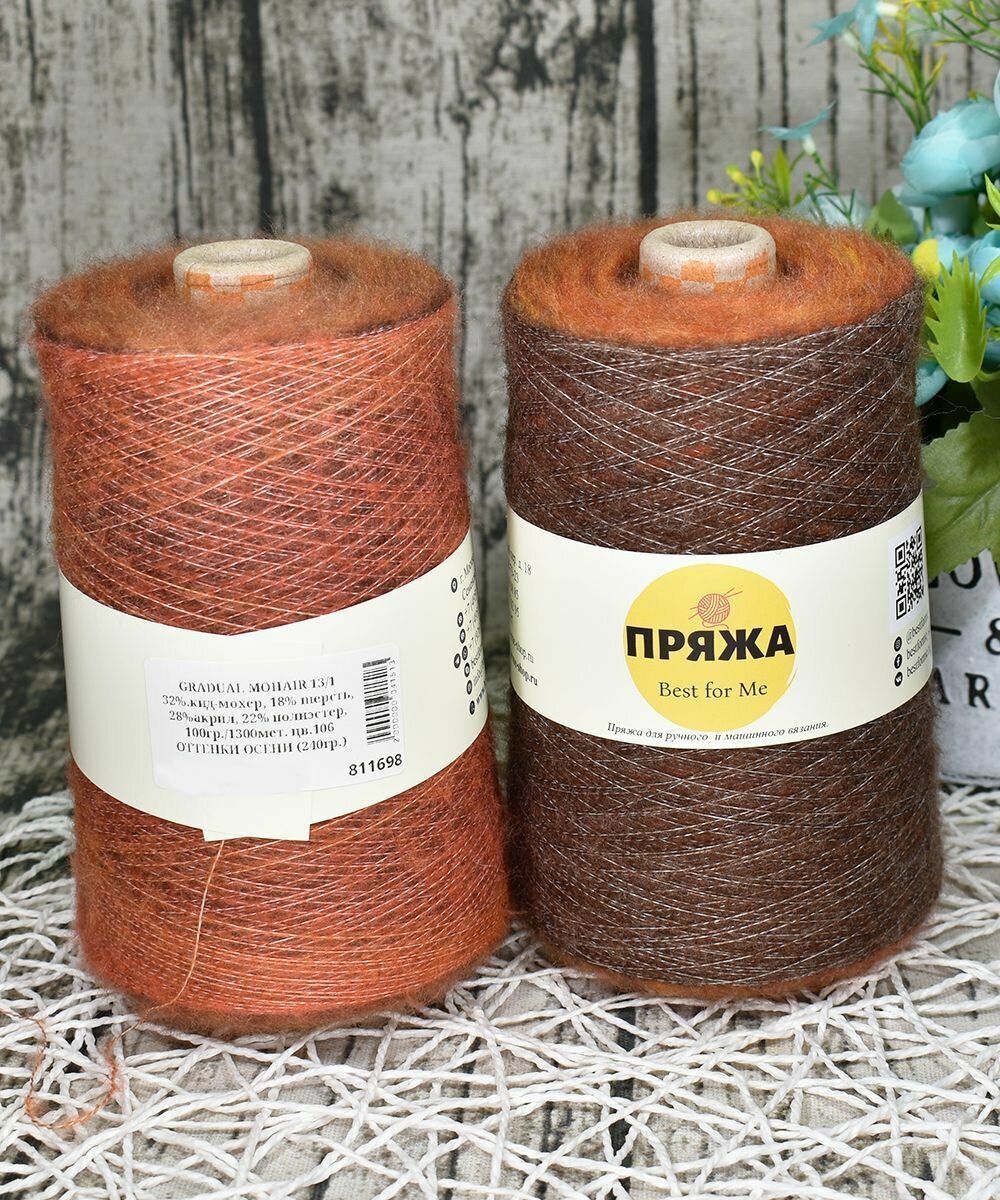 Пряжа на бобине Кид-мохер с длинным переходом цвета цв.103 полынь-рыжий (250гр.)