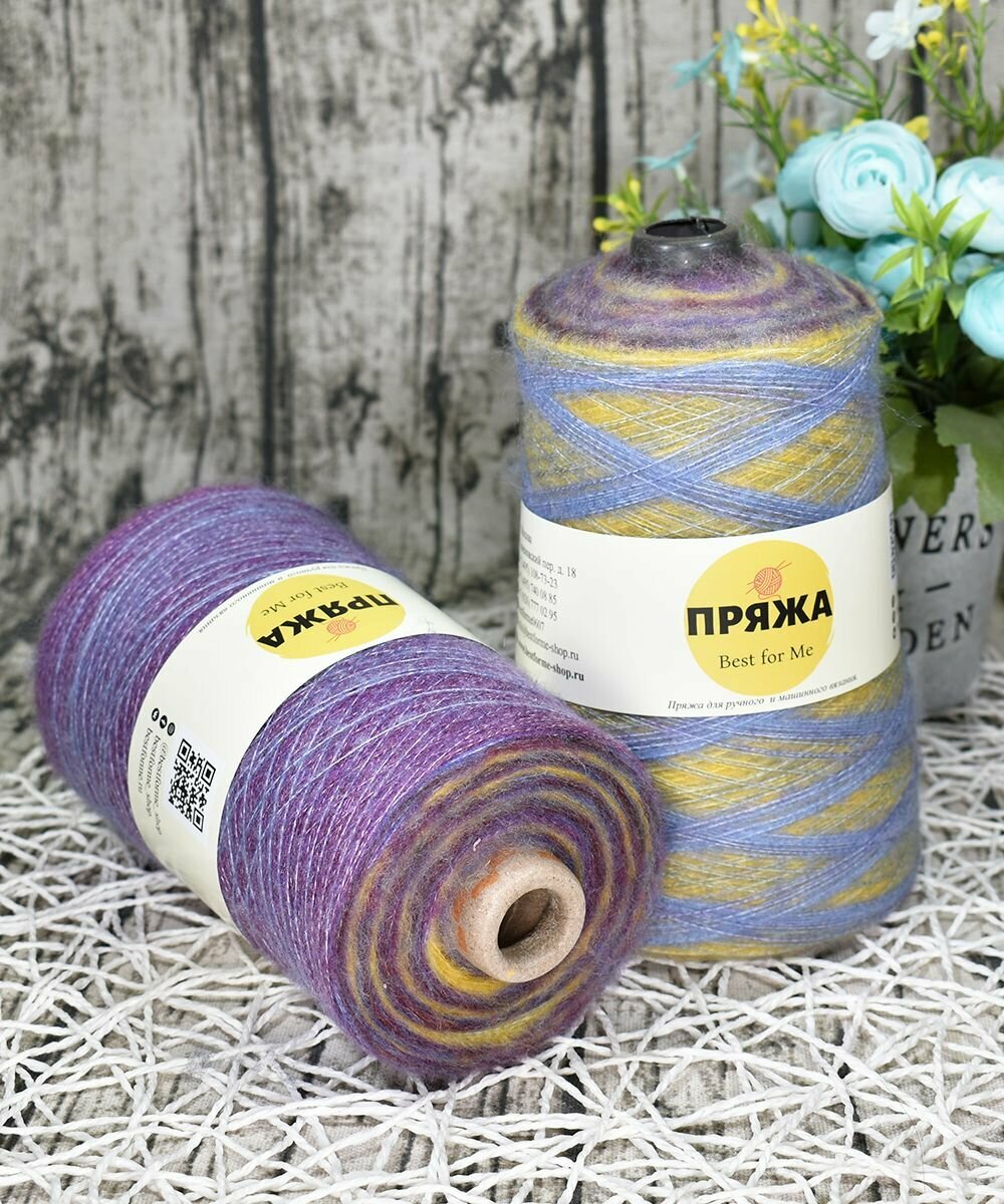 Пряжа на бобине Кид-мохер с длинным переходом цвета цв.105 ГОЛУБ-ЖЕЛТ-СИРЕНЬ (250гр.)
