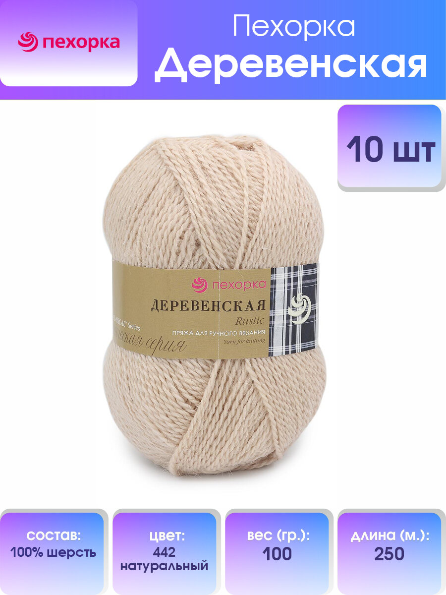 Пряжа 10 шт Пехорка "Деревенская" Натуральный (442)