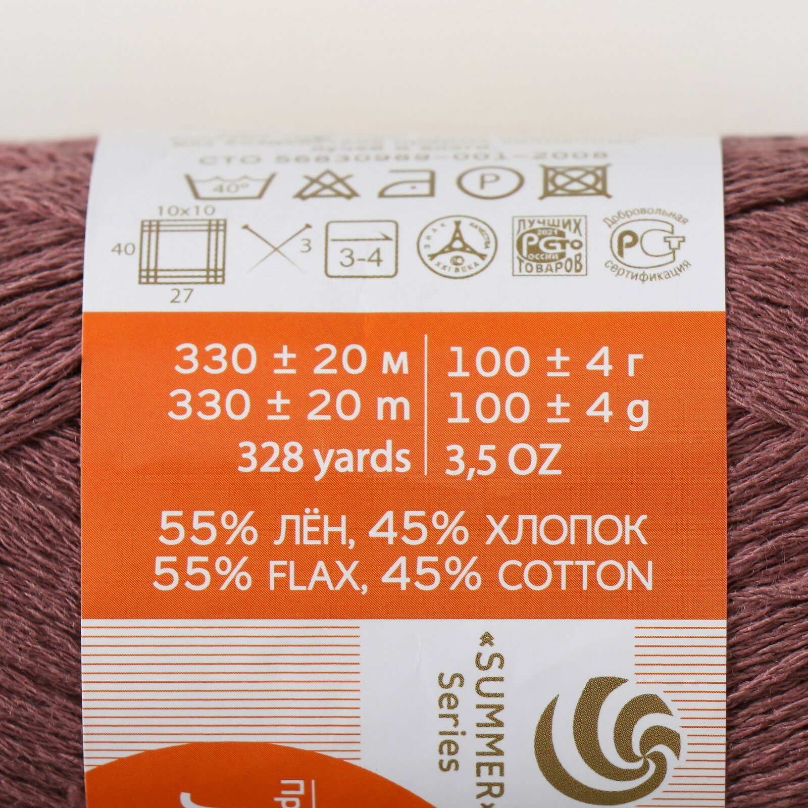 Пряжа для вязания Пехорка 'Льняная' 100гр. 330м. (лен 55%, 45% хлопок) (393 маренго), 5 мотков