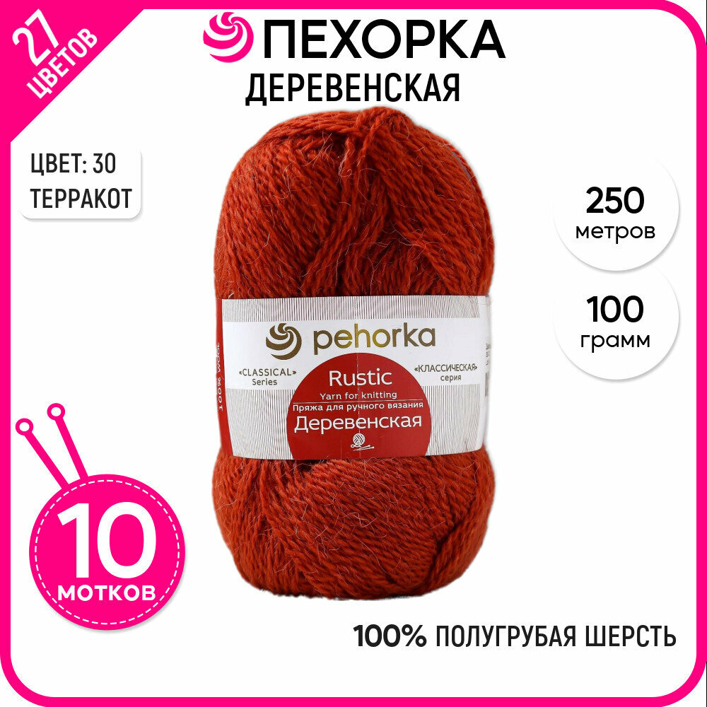 Купить Пряжа для вязания Пехорка 'Деревенская' 100г, 250м (100% шерсть) (30-Светлый Терракот), 10 мотков