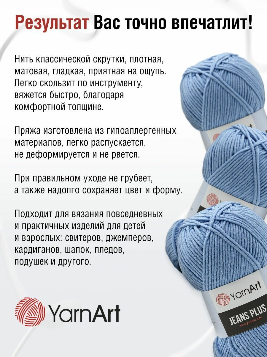 СохранитьПряжа для вязания YarnArt 'Jeans Plus' 100г, 160м (55% хлопок, 45% полиакрил) (15 светлый джинс), 5 мотков интересное: