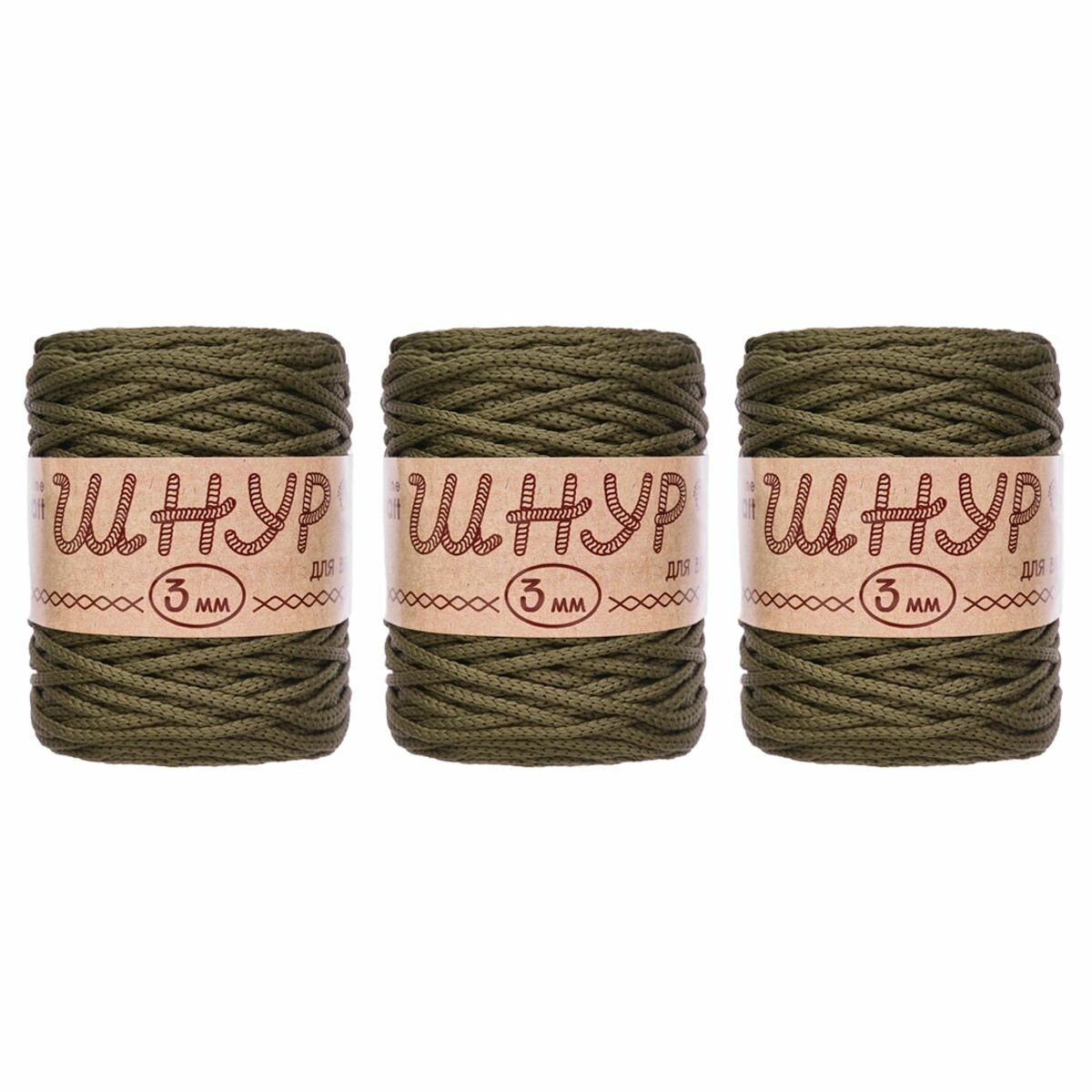 Пряжа для вязания Astra Premium 'Шнур для вязания 3 мм', 200г, 100м (100% полиэфир) (490 хаки), 3 мотка