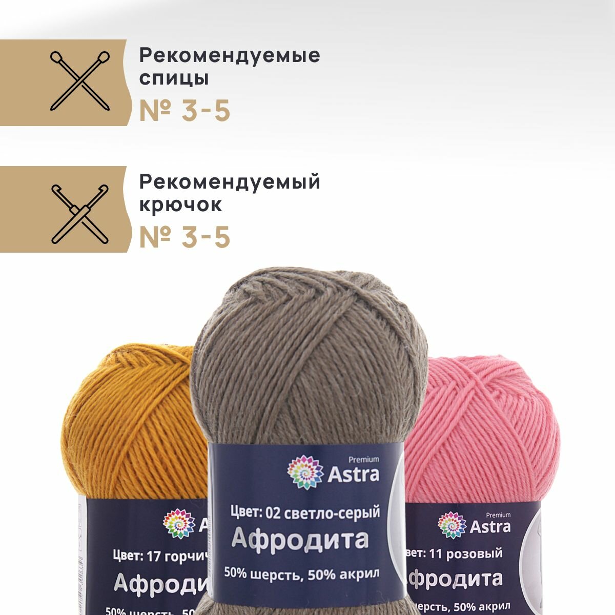 Пряжа для вязания Astra Premium 'Афродита' 100г, 250м (50% шерсть, 50% акрил) (08 суровый), 3 мотка