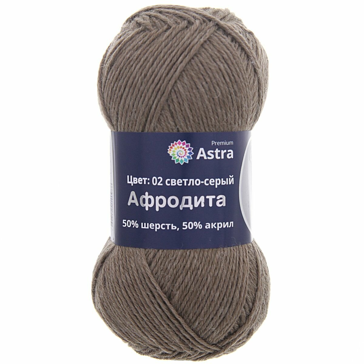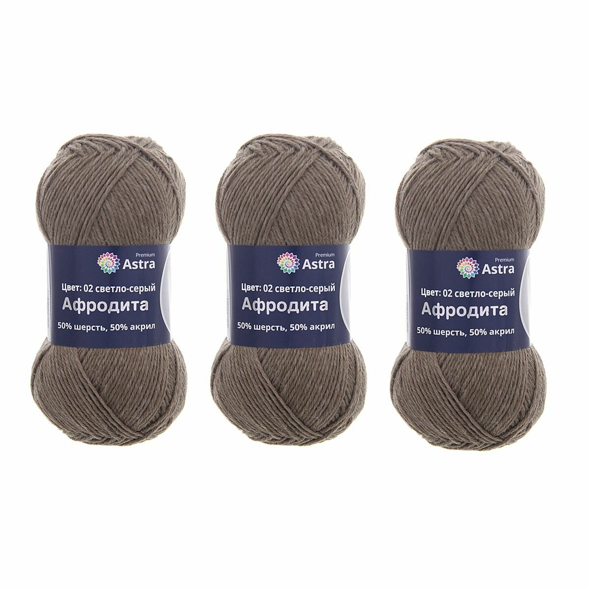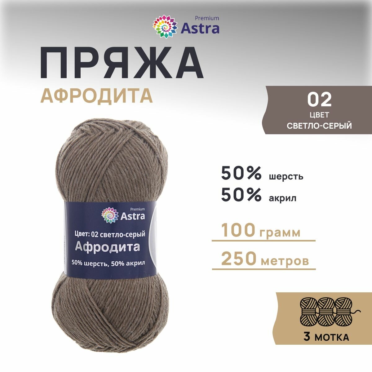 Пряжа для вязания Astra Premium 'Афродита', 100г, 250м (50% шерсть, 50% акрил) (02 светло-серый), 3 мотка