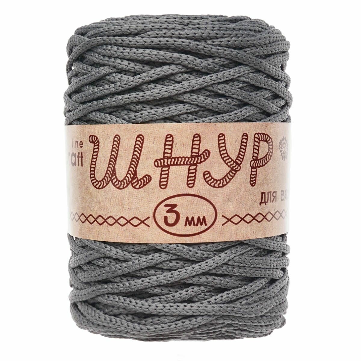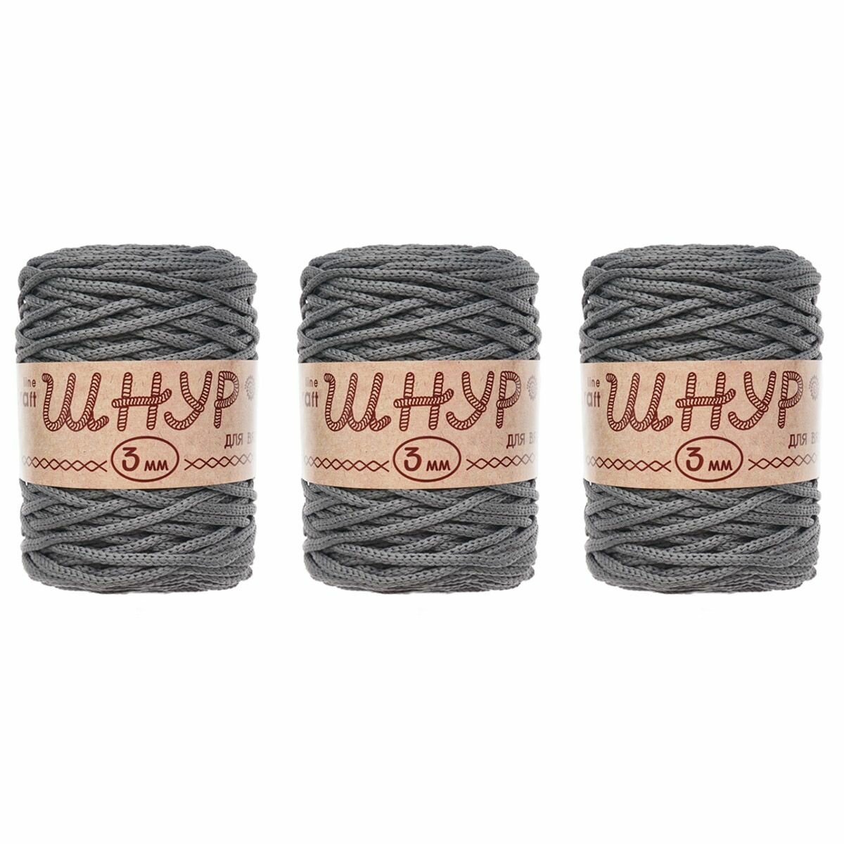 Пряжа для вязания Astra Premium 'Шнур для вязания 3 мм', 200г, 100м (100% полиэфир) (960 серый), 3 мотка