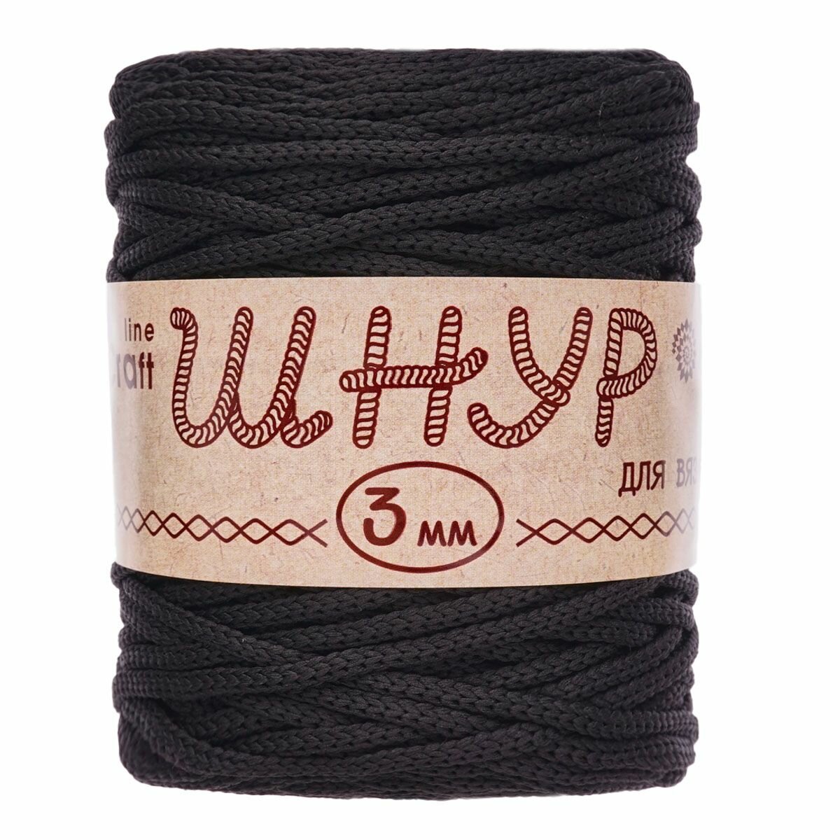 Пряжа для вязания Astra Premium 'Шнур для вязания 3 мм' 200г, 100м (100% полиэфир) (880 шоколад), 3 мотка