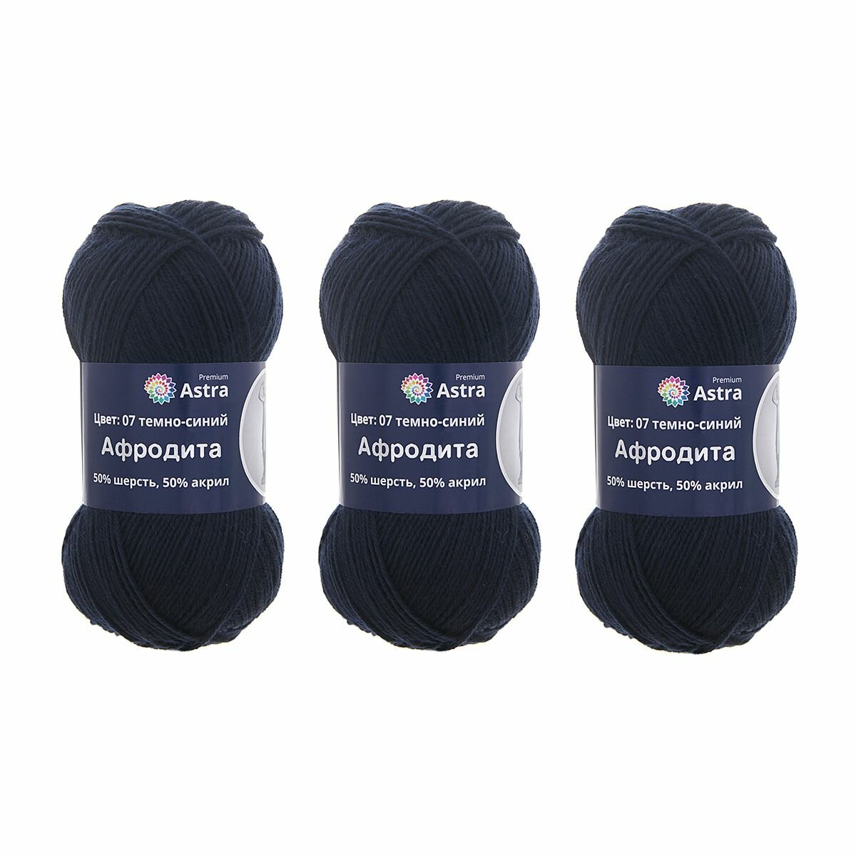 Пряжа для вязания Astra Premium 'Афродита', 100г, 250м (50% шерсть, 50% акрил) (07 темно-синий), 3 мотка