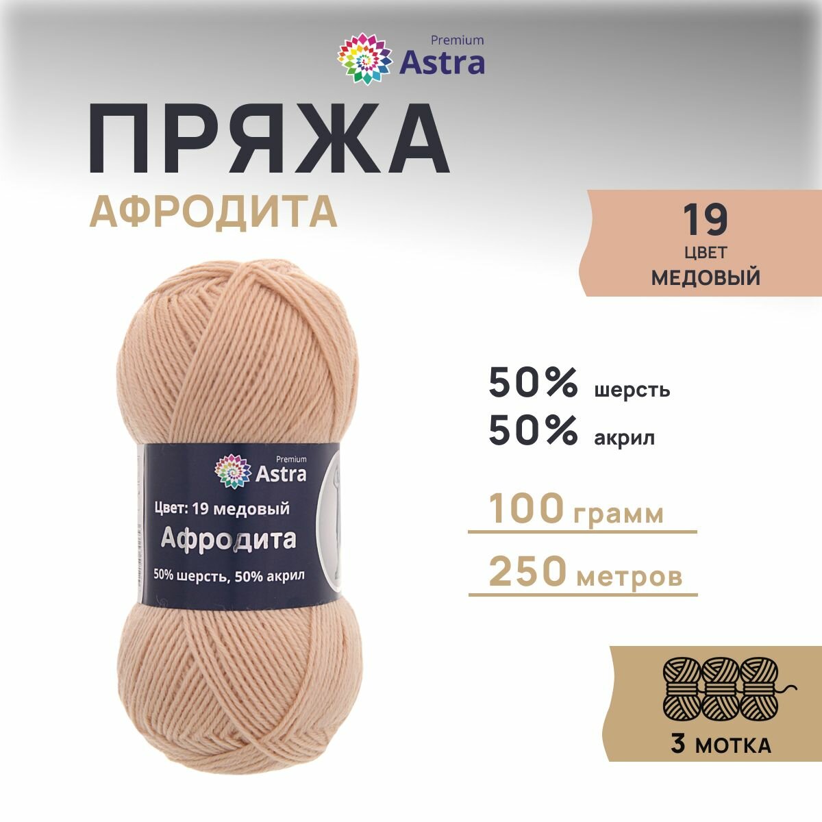 Пряжа Astra Premium "Афродита", 100 гр 250 м, 50% шерсть, 50% акрил, 19 медовый, 3 шт