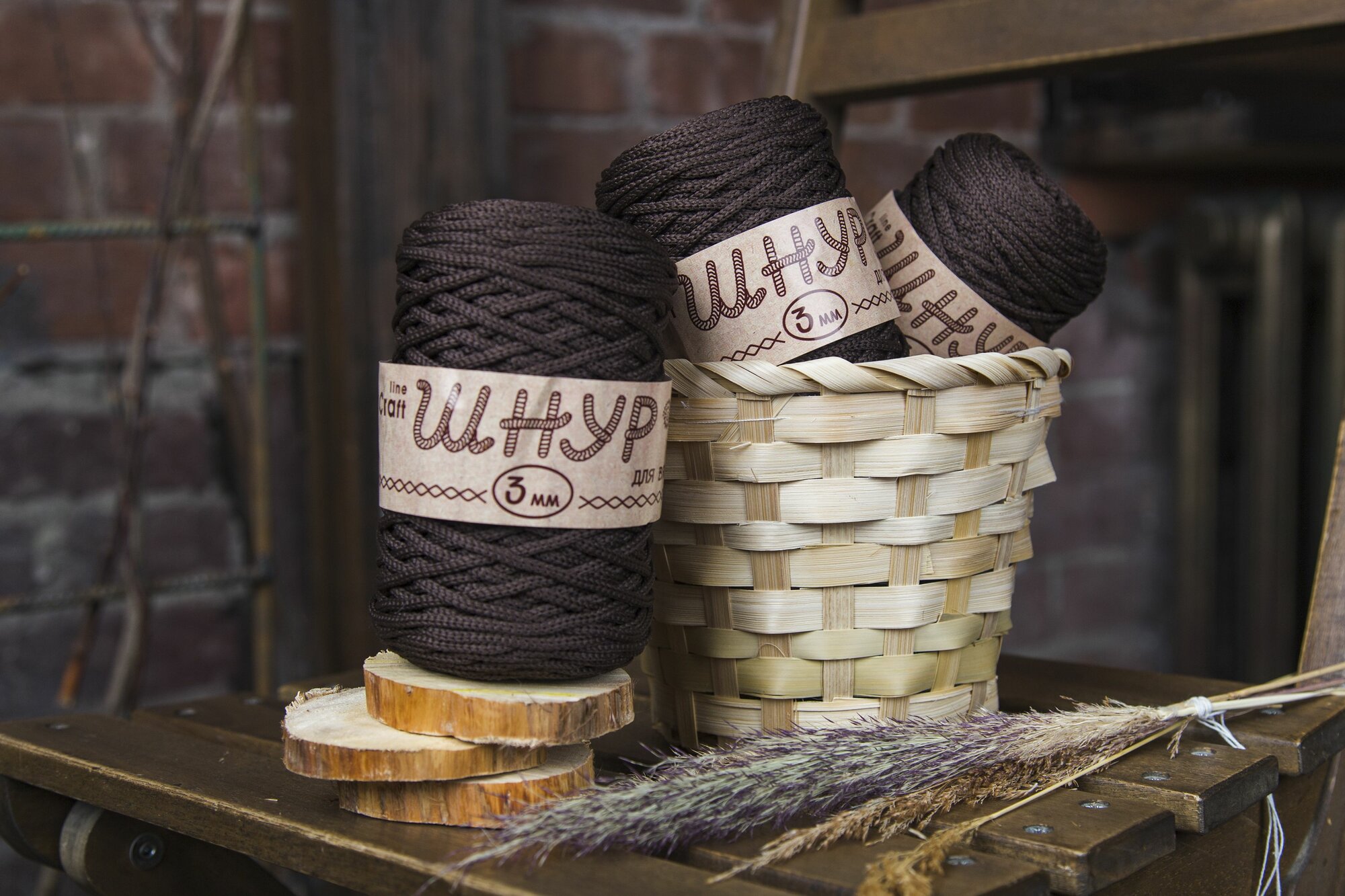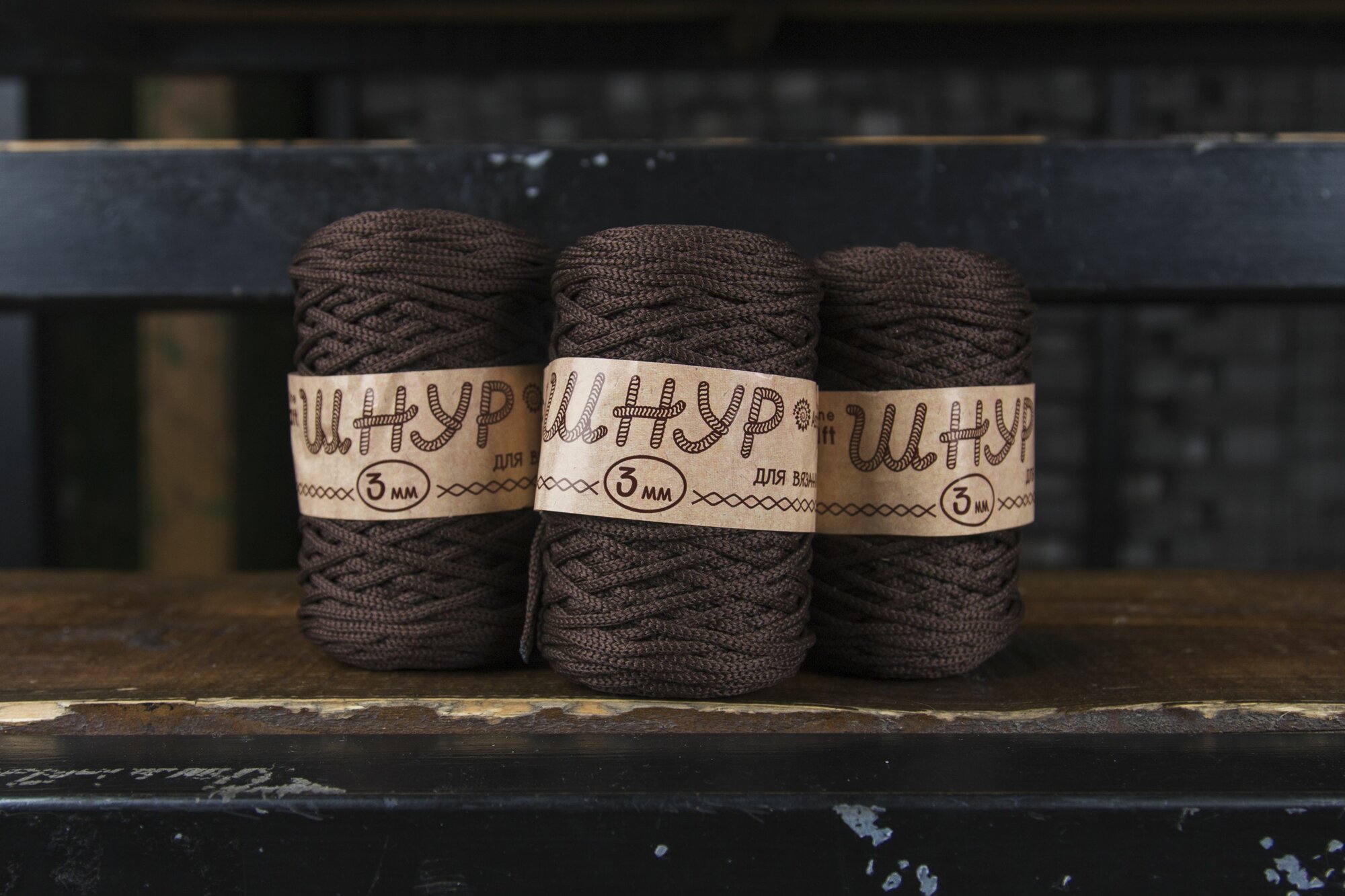 Пряжа для вязания Astra Premium 'Шнур для вязания 3 мм', 200г, 100м (100% полиэфир) (880 шоколад), 3 мотка