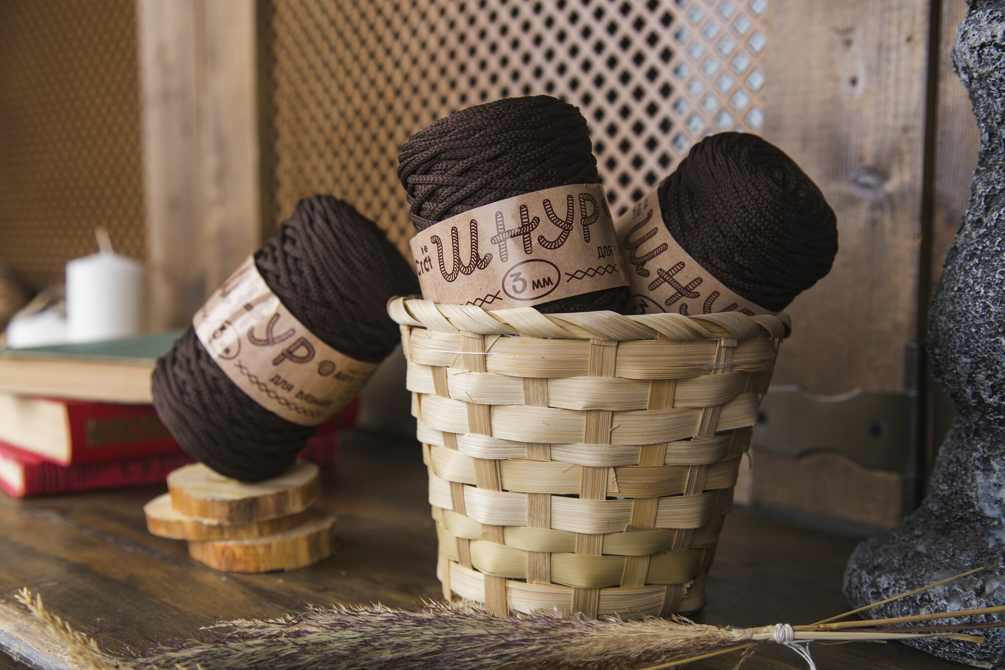 Купить Пряжа для вязания Astra Premium 'Шнур для вязания 3 мм' 200г, 100м (100% полиэфир) (880 шоколад), 3 мотка