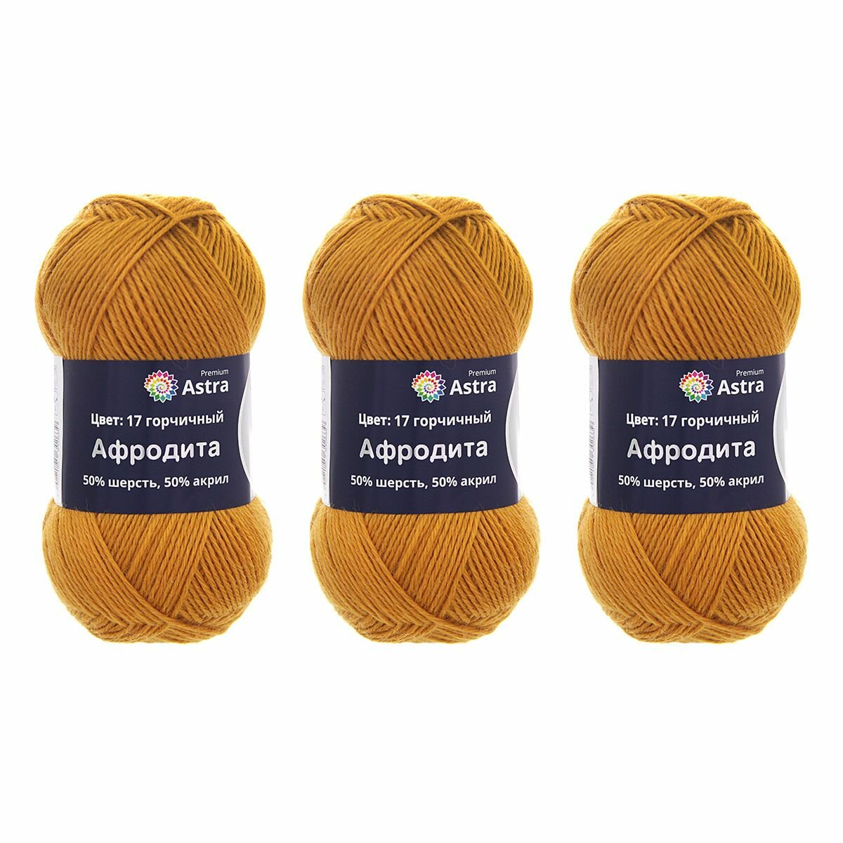 Пряжа для вязания Astra Premium 'Афродита', 100г, 250м (50% шерсть, 50% акрил) (17 горчичный), 3 мотка