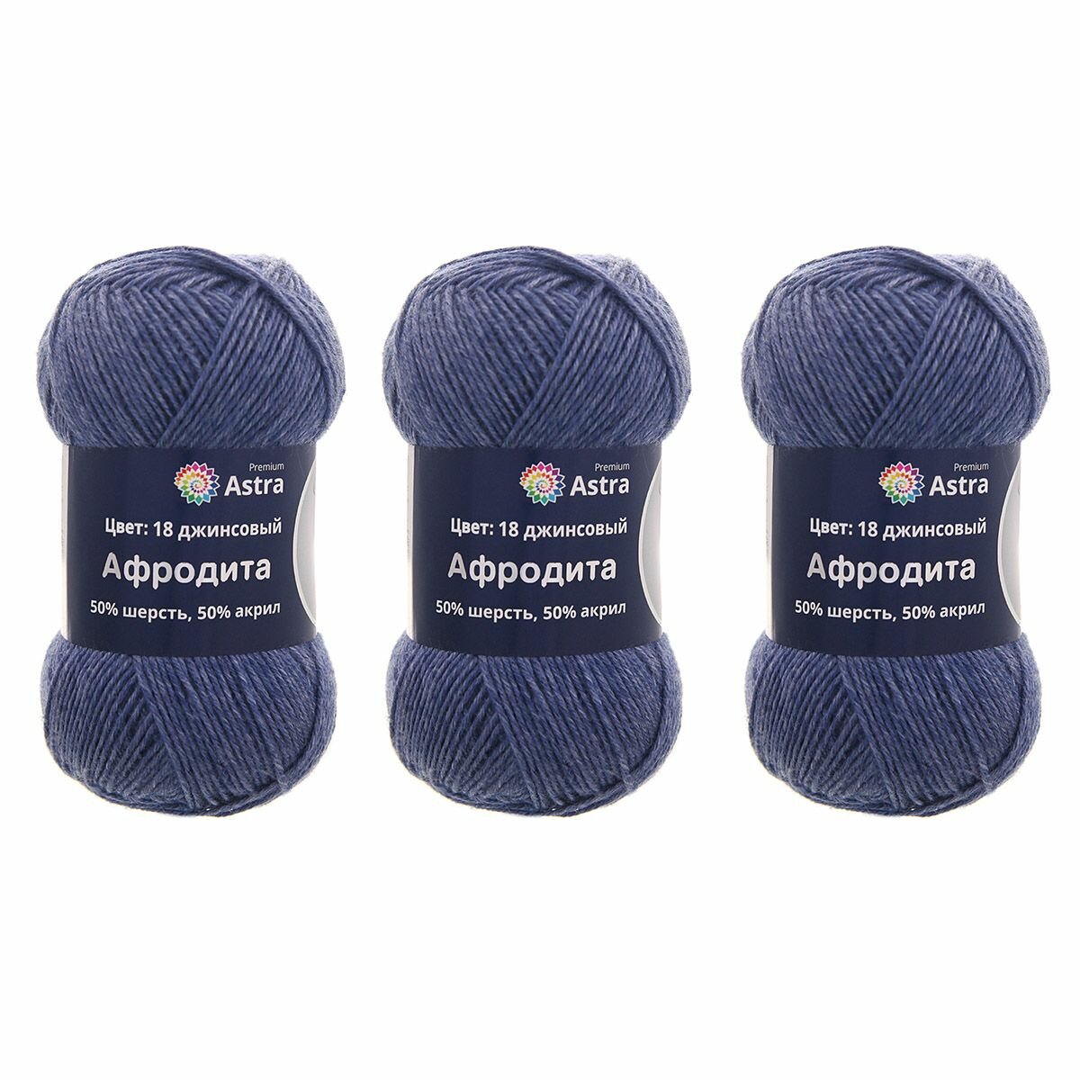 Пряжа для вязания Astra Premium 'Афродита', 100г, 250м (50% шерсть, 50% акрил) (18 джинсовый), 3 мотка