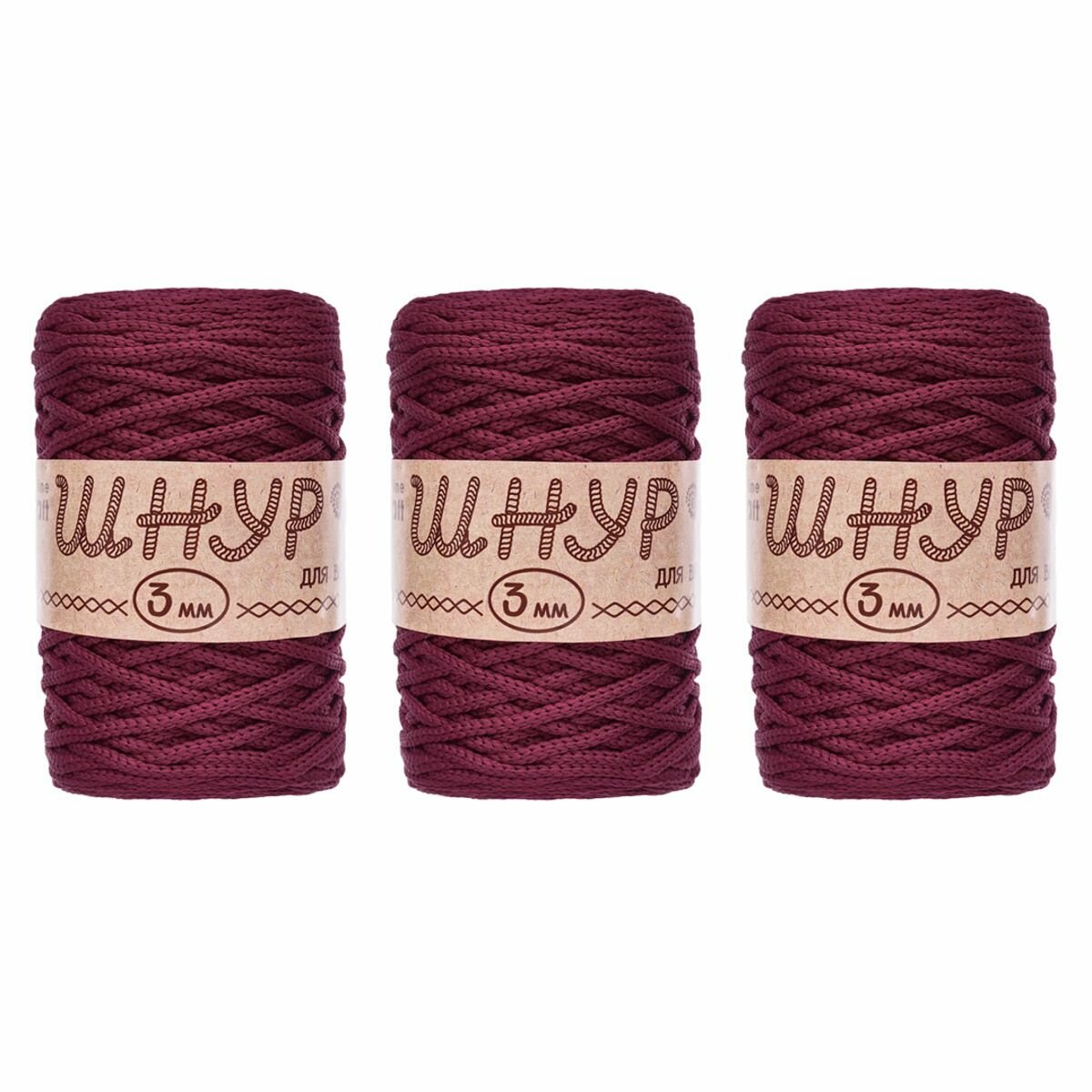 Купить Пряжа для вязания Astra Premium 'Шнур для вязания 3 мм' 200г, 100м (100% полиэфир) (190 бордо), 3 мотка