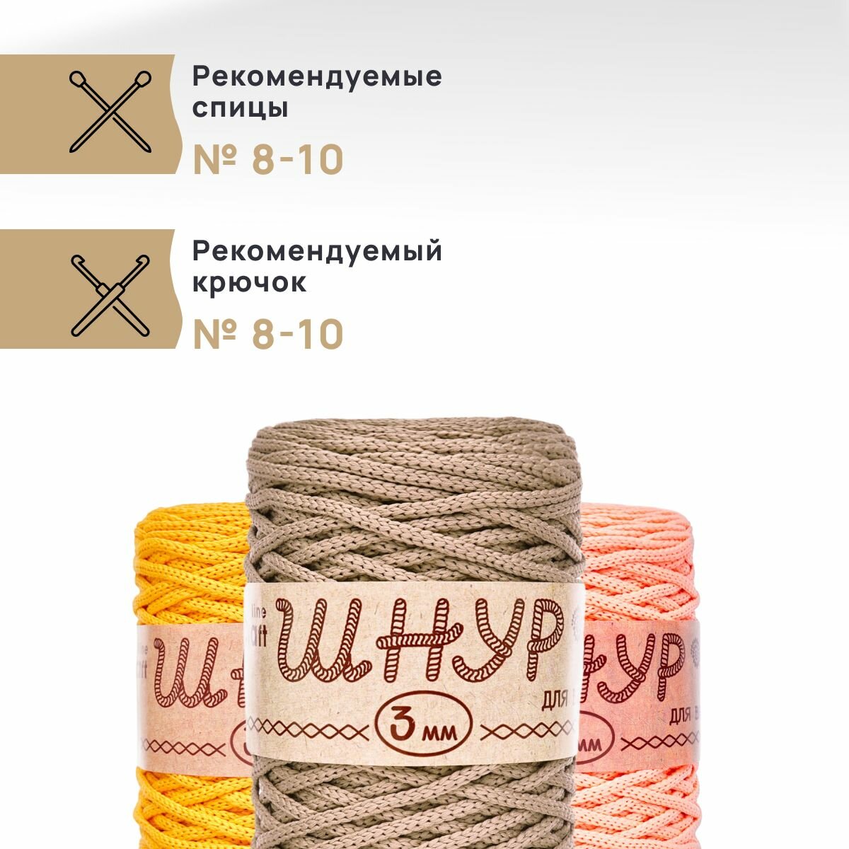 Пряжа для вязания Astra Premium 'Шнур для вязания 3 мм', 200г, 100м (100% полиэфир) (805 бежевый), 3 мотка