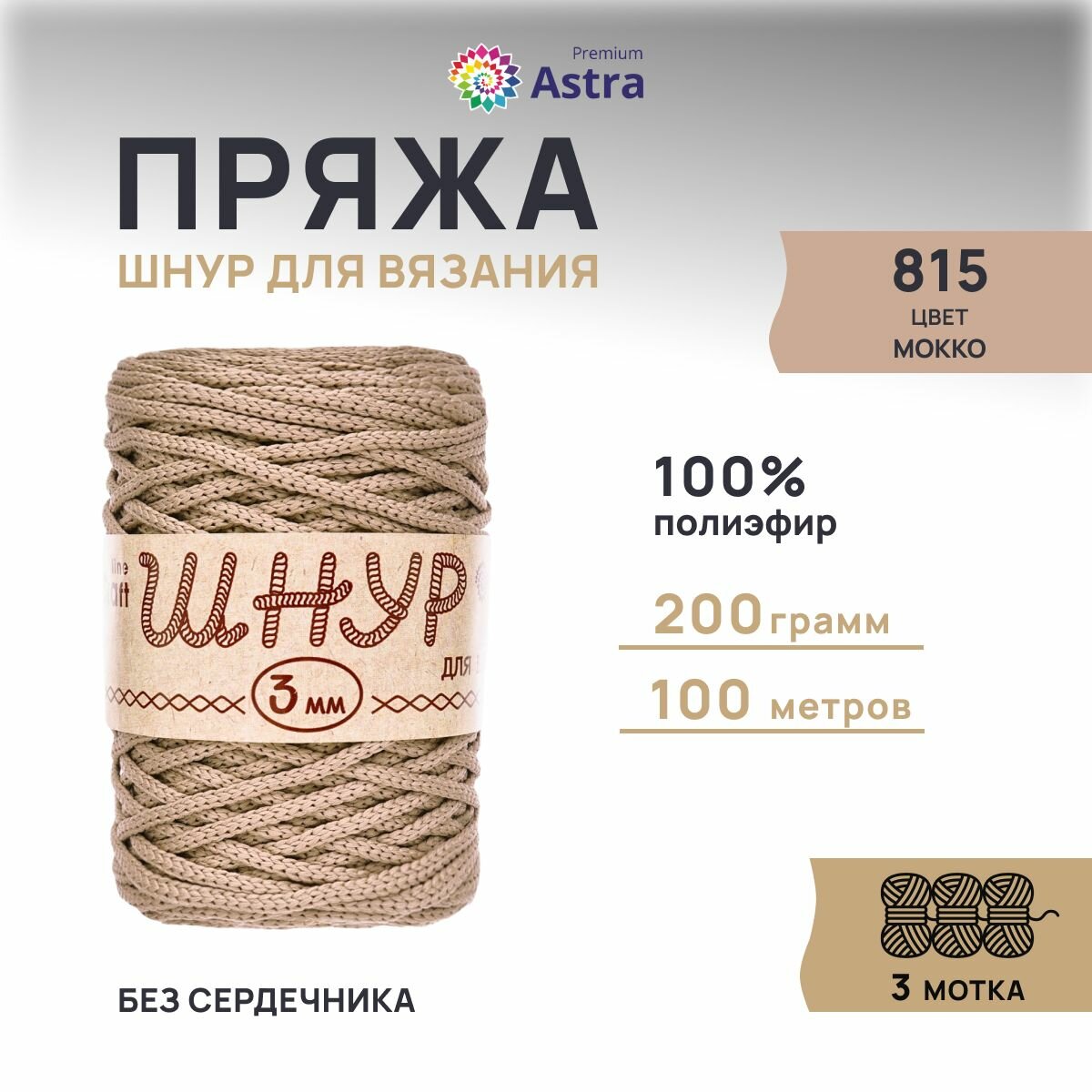 Пряжа для вязания Astra Premium 'Шнур для вязания 3 мм', 200г, 100м (100% полиэфир) (815 мокко), 3 мотка