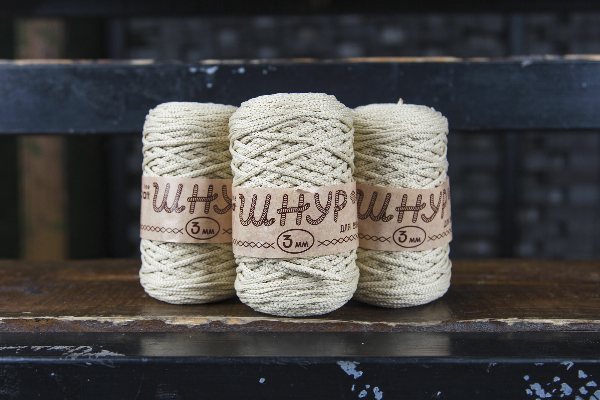 Пряжа для вязания Astra Premium 'Шнур для вязания 3 мм' 200г, 100м (100% полиэфир) (805 бежевый), 3 мотка