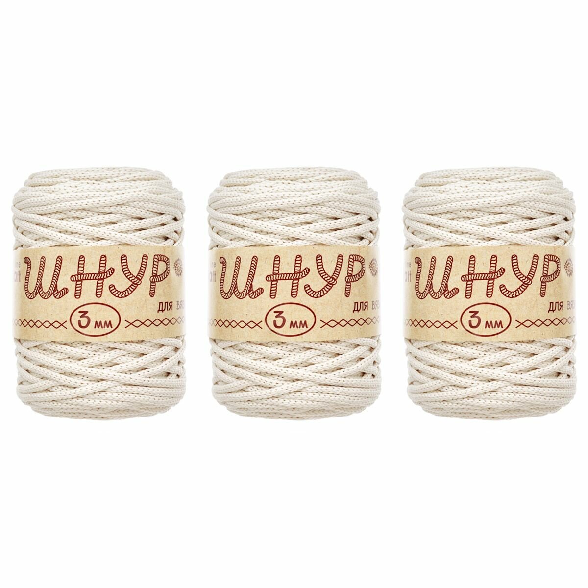 Купить Пряжа для вязания Astra Premium 'Шнур для вязания 3 мм' 200г, 100м (100% полиэфир) (025 молочный), 3 мотка