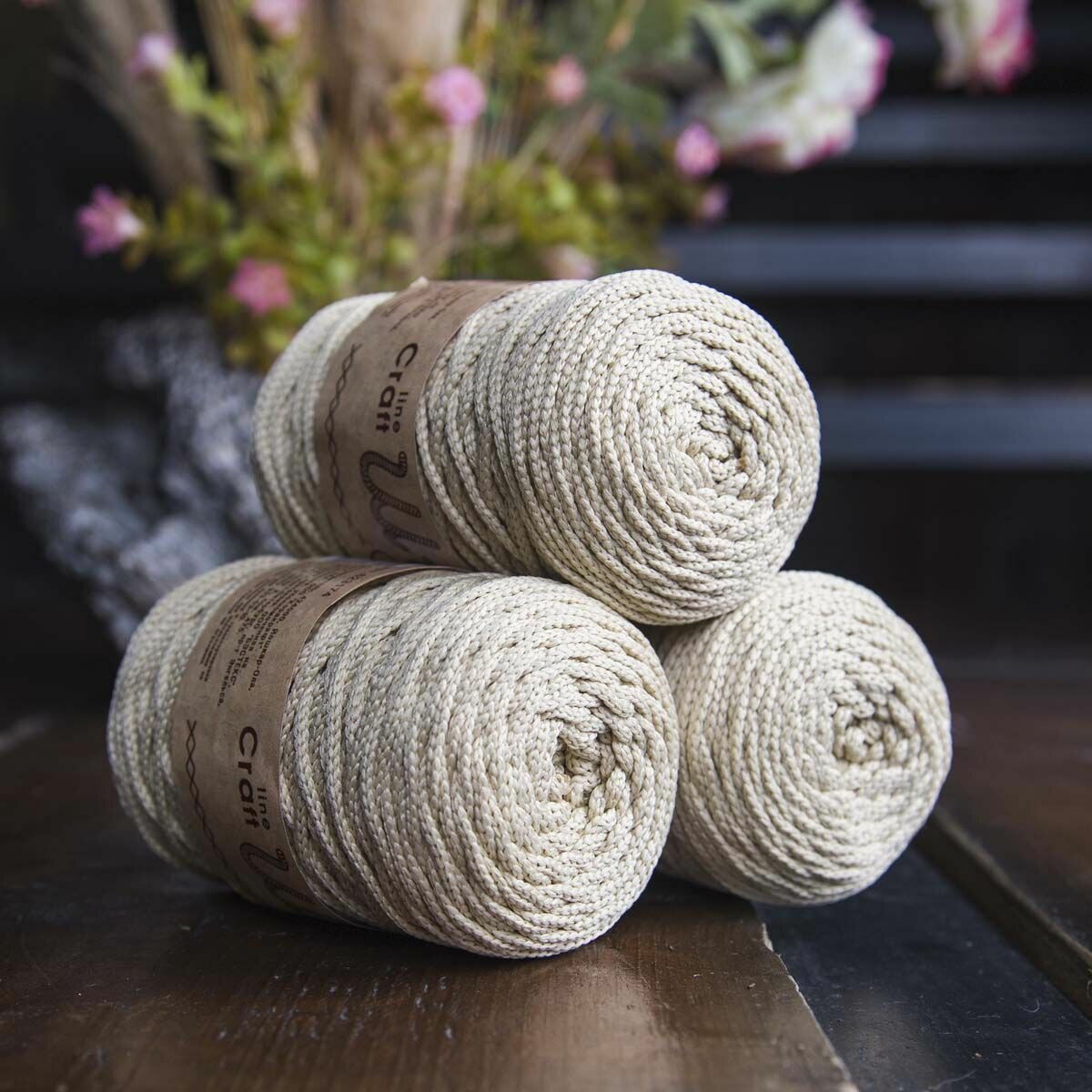 Пряжа для вязания Astra Premium 'Шнур для вязания 3 мм' 200г, 100м (100% полиэфир) (070 экрю), 3 мотка