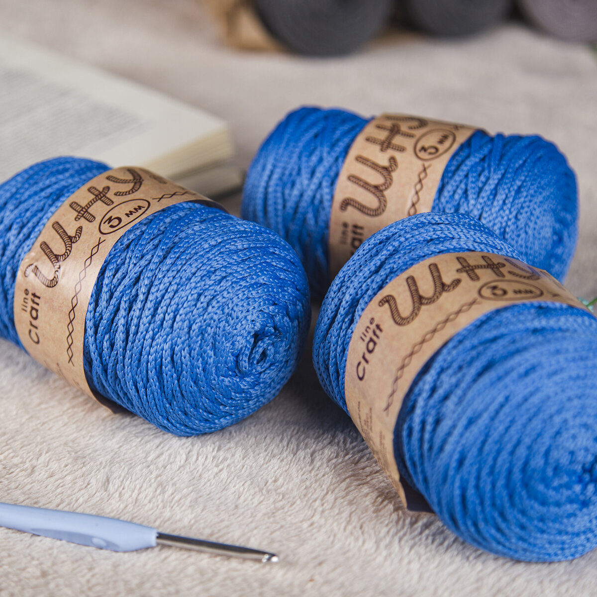 Пряжа для вязания Astra Premium 'Шнур для вязания 3 мм', 200г, 100м (100% полиэфир) (565 голубой), 3 мотка