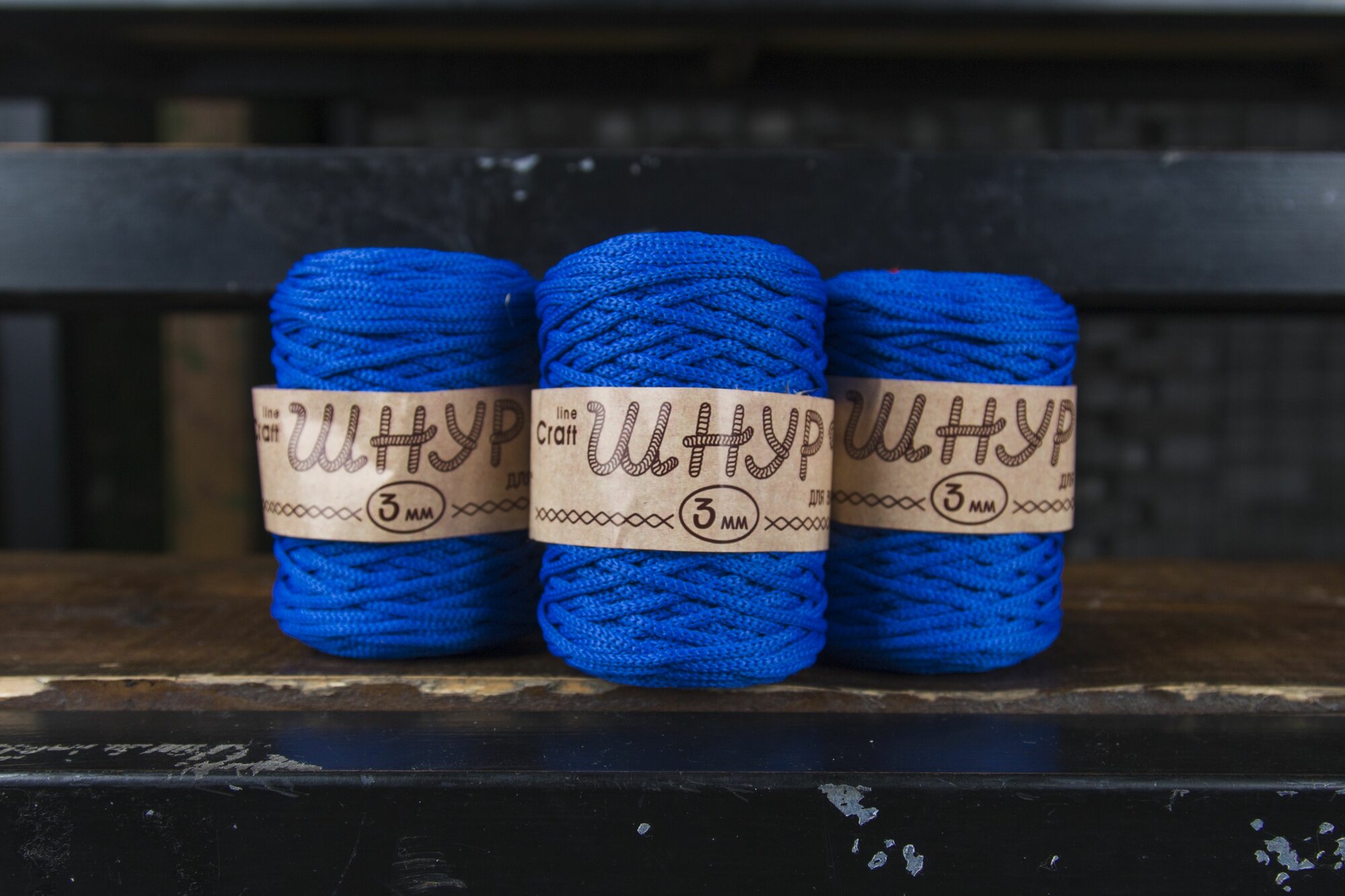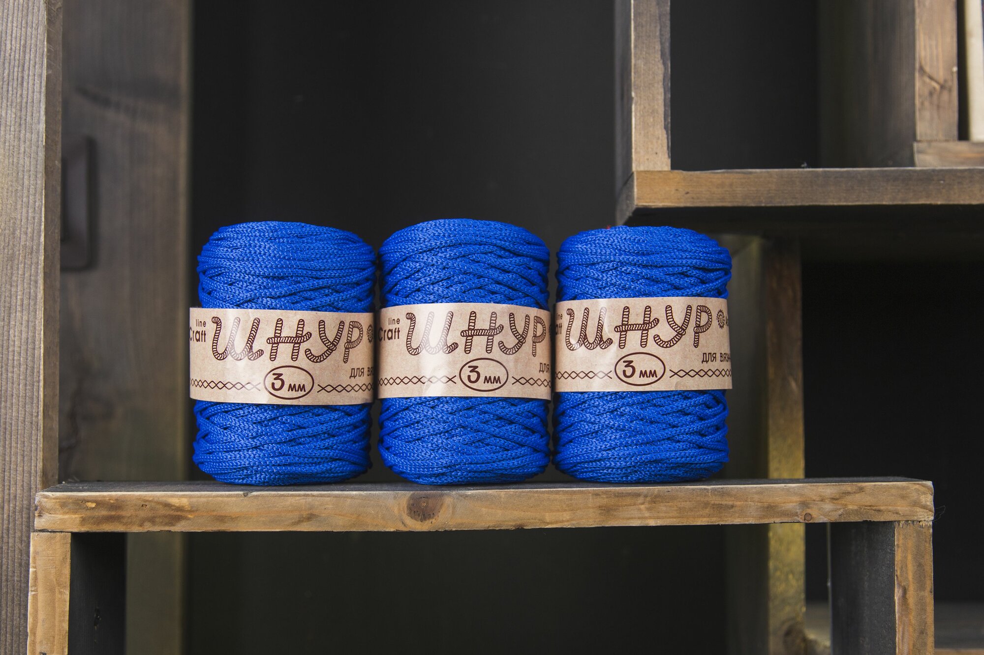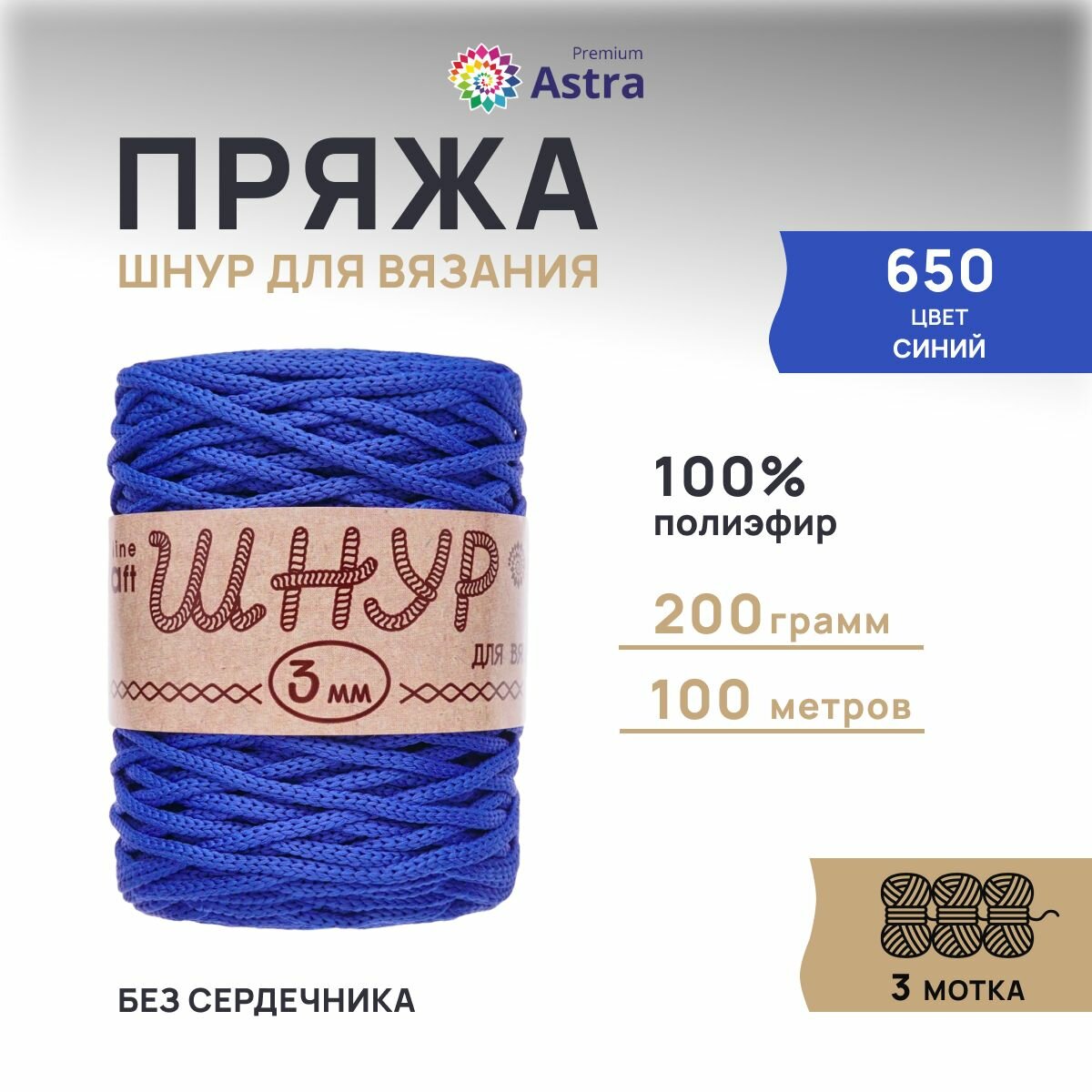 Пряжа для вязания Astra Premium 'Шнур для вязания 3 мм', 200г, 100м (100% полиэфир) (650 синий), 3 мотка