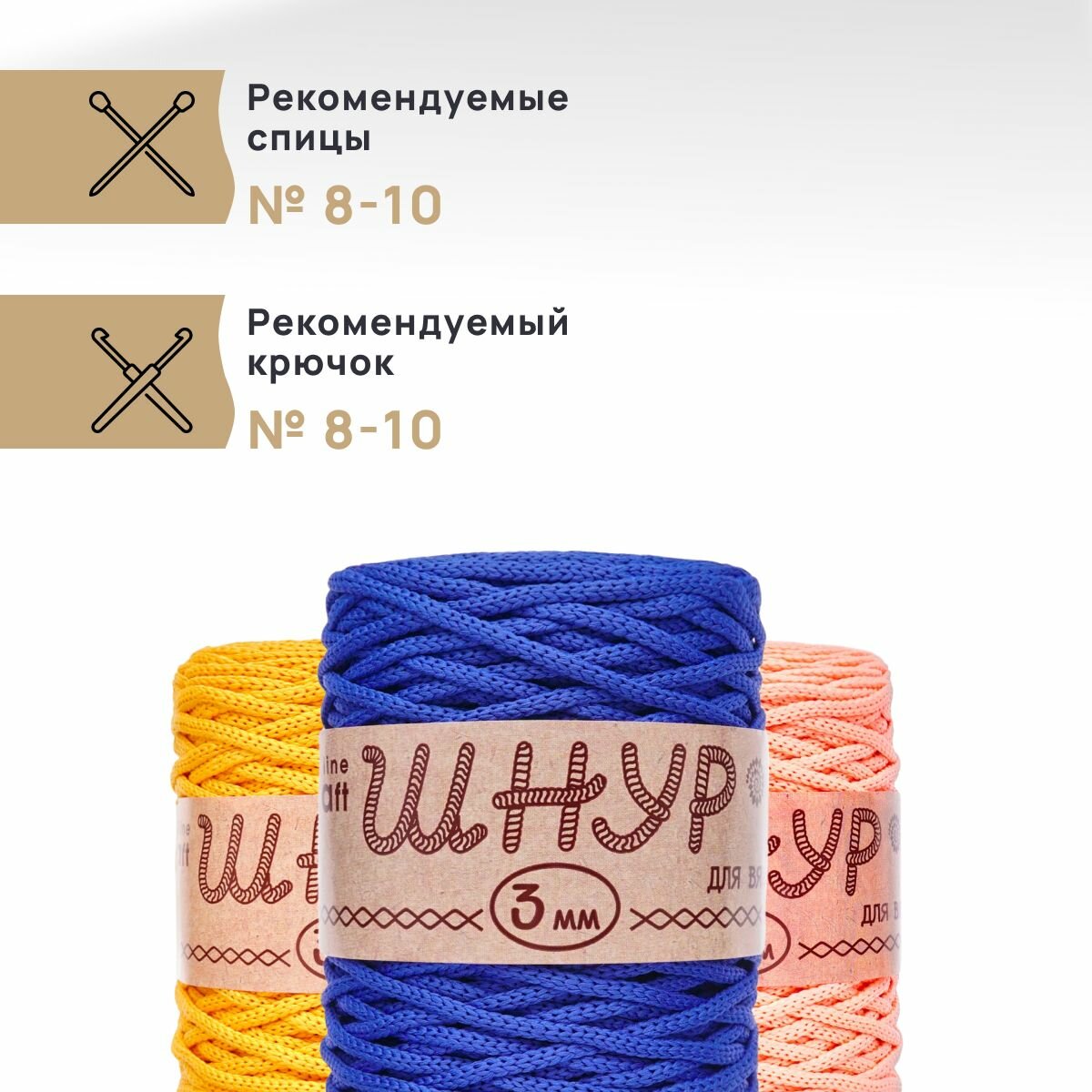 Пряжа для вязания Astra Premium 'Шнур для вязания 3 мм', 200г, 100м (100% полиэфир) (805 бежевый), 3 мотка