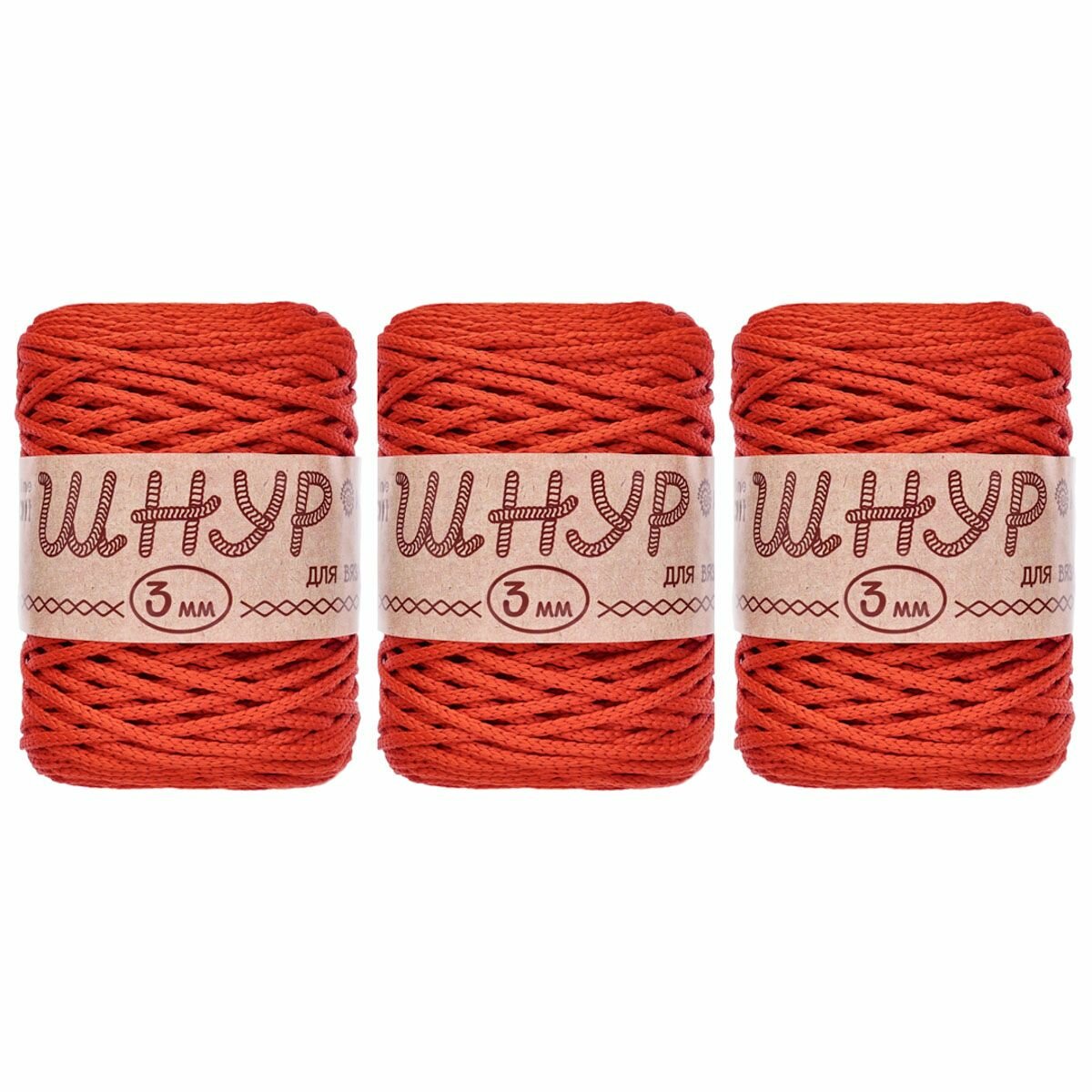 Пряжа для вязания Astra Premium 'Шнур для вязания 3 мм', 200г, 100м (100% полиэфир) (151 красный), 3 мотка