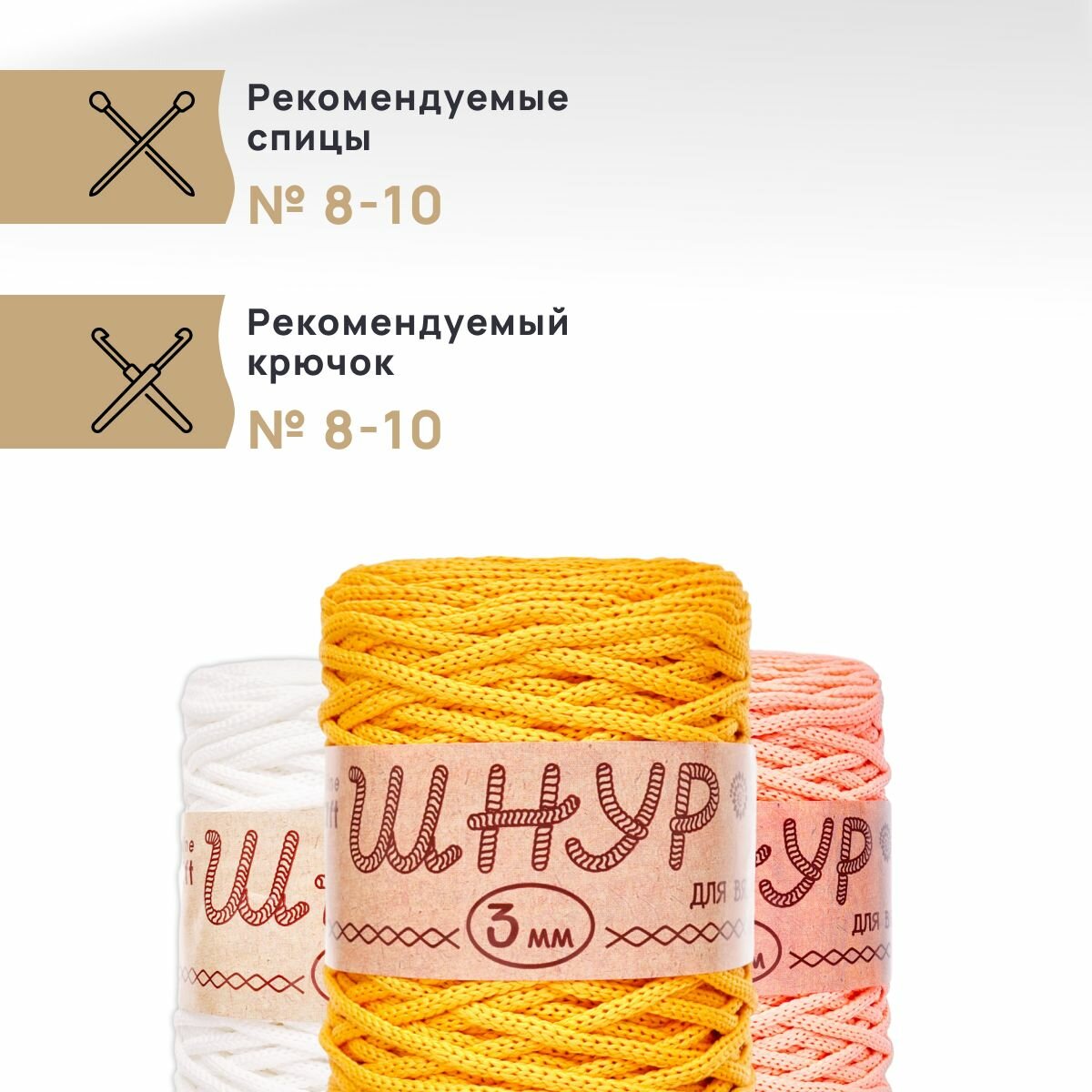 Пряжа для вязания Astra Premium 'Шнур для вязания 3 мм', 200г, 100м (100% полиэфир) (805 бежевый), 3 мотка
