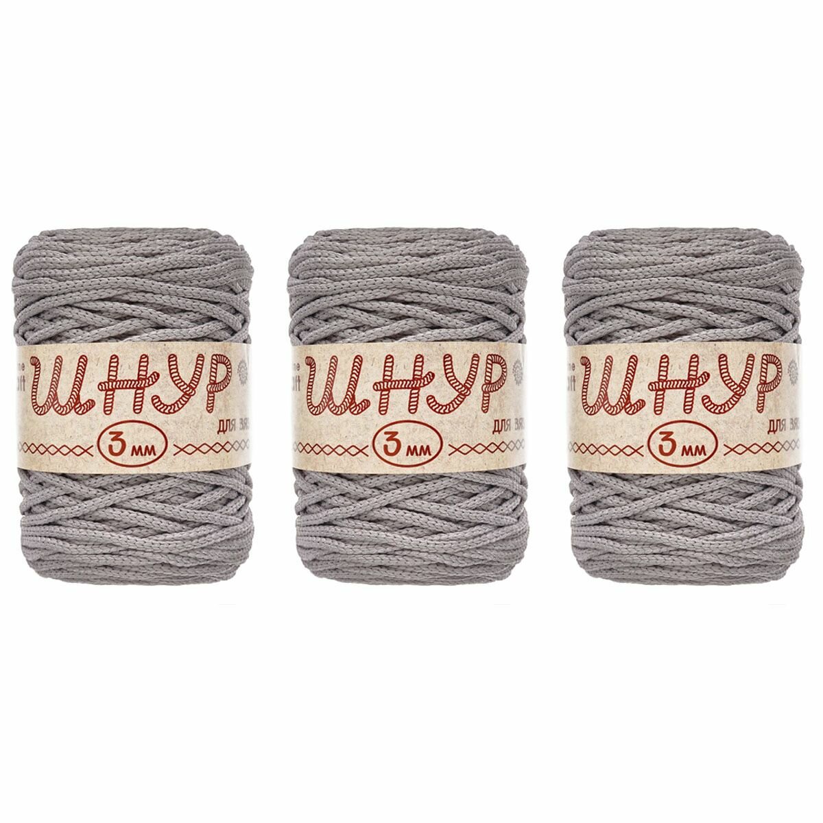 Пряжа для вязания Astra Premium 'Шнур для вязания 3 мм' 200г, 100м (100% полиэфир) (960 серый), 3 мотка