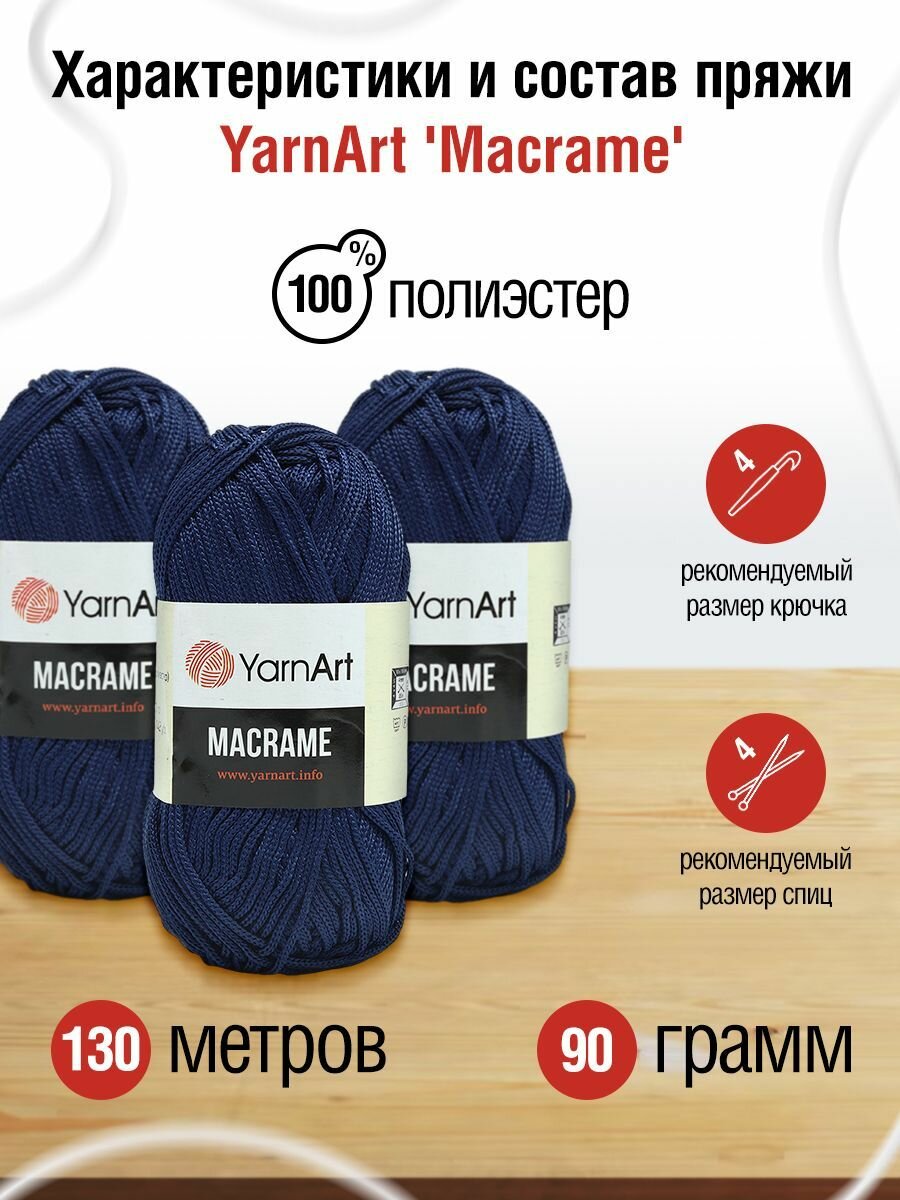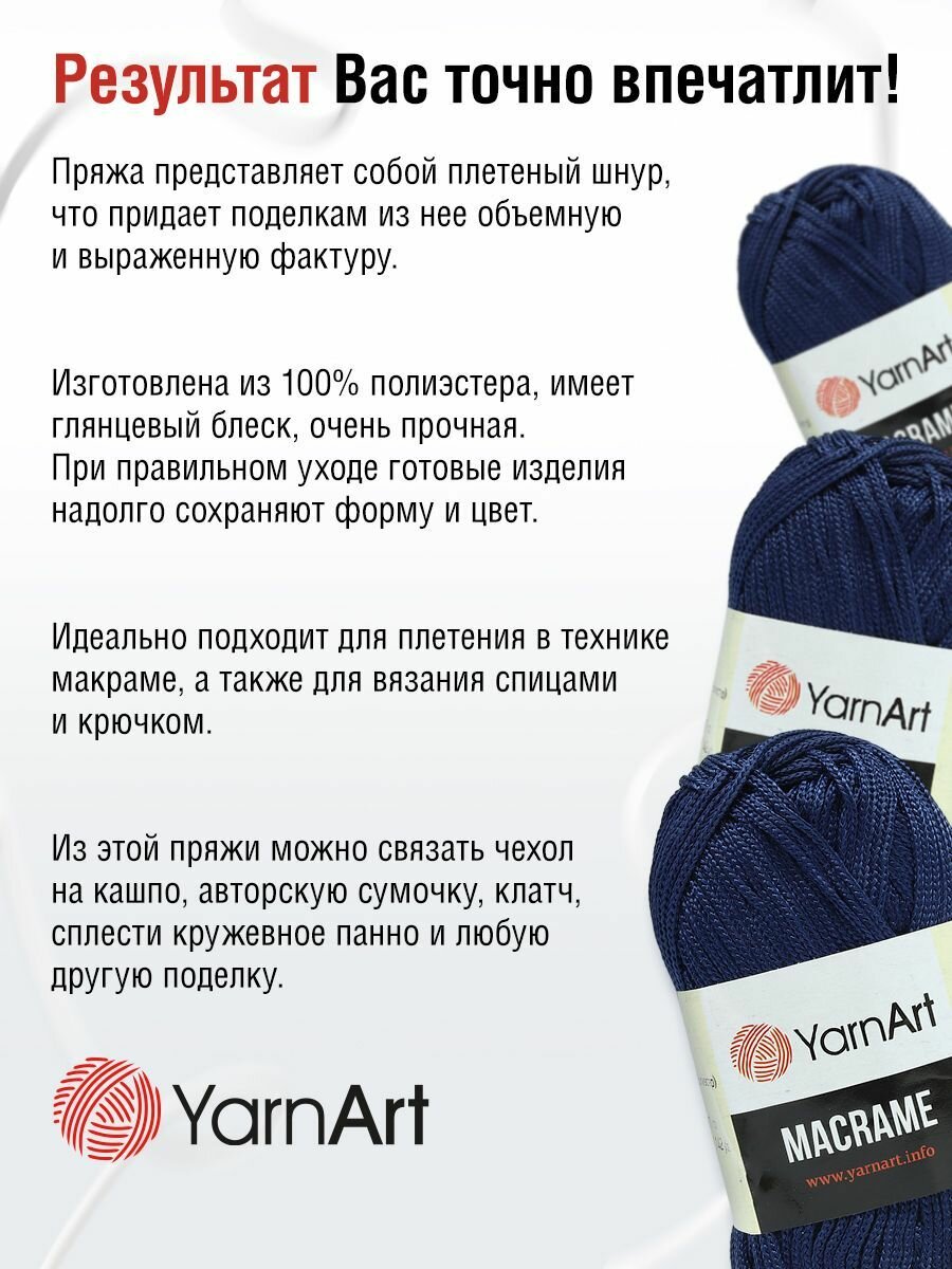 СохранитьПряжа для вязания YarnArt 'Macrame' 90г, 130м (100% полиэстер) (162 фиолетовый джинс), 6 мотков интересное: