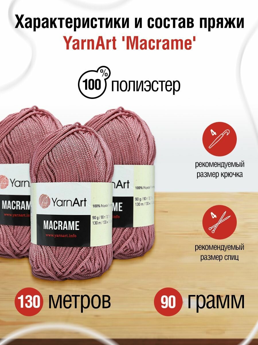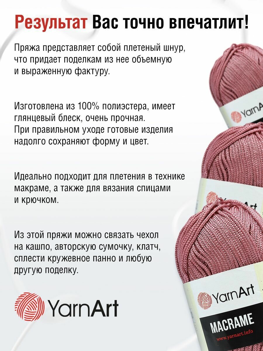 СохранитьПряжа Macrame YarnArt, пыльная роза - 141, 100% полиэстер, 6 мотков, 90 г., 130 м. интересное: