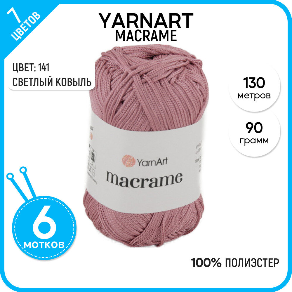 Купить Пряжа Macrame YarnArt, пыльная роза - 141, 100% полиэстер, 6 мотков, 90 г., 130 м.