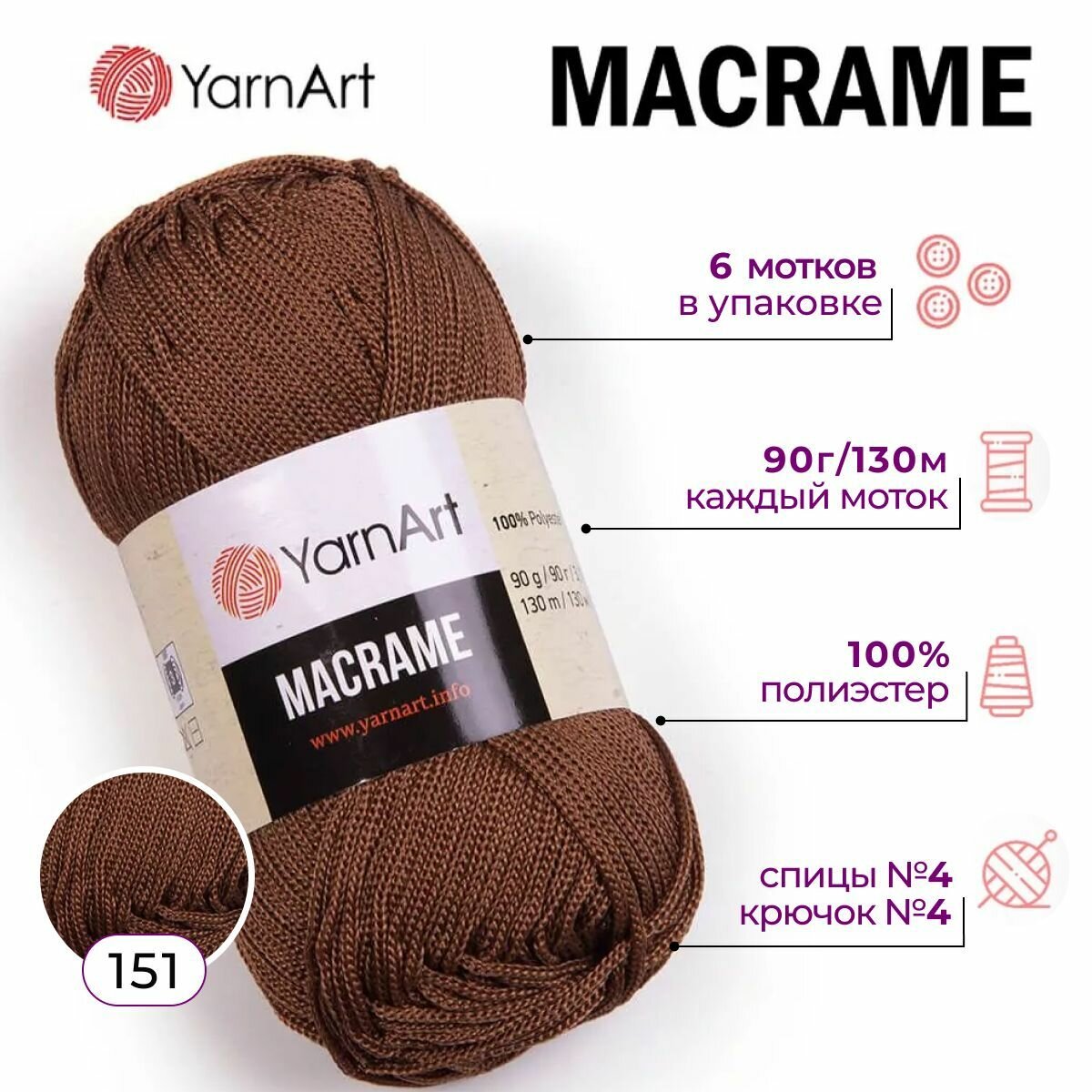 Пряжа для вязания YarnArt 'Macrame' 90гр 130м (100% полиэстер) (151 коричневый), 6 мотков