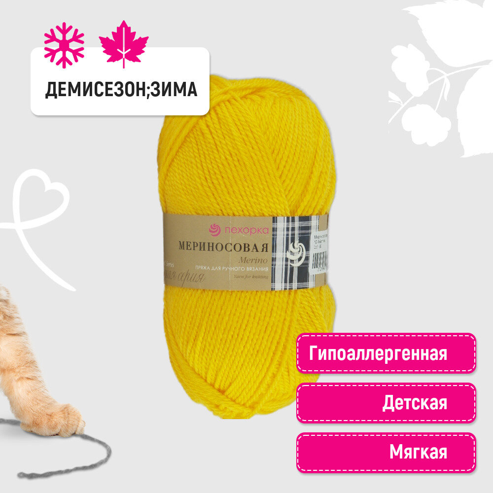 Пряжа для вязания Пехорка 'Мериносовая', 100г, 200м (50% шерсть, 50% акрил) (12-Желток), 10 мотков