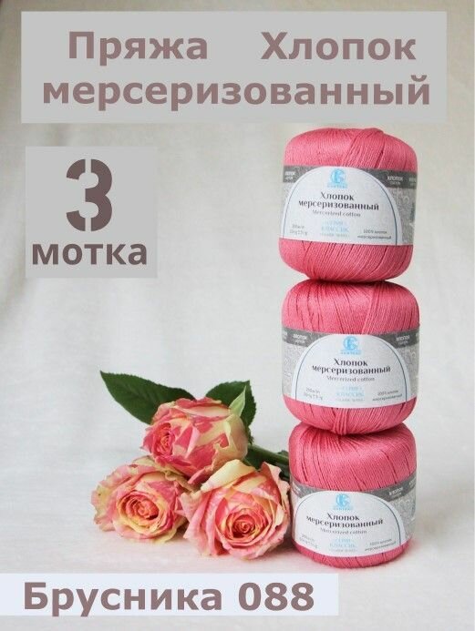 Пряжа Камтекс Хлопок мерсеризованный брусника (088), 100%мерсеризованный хлопок, 200м, 50г, 1шт