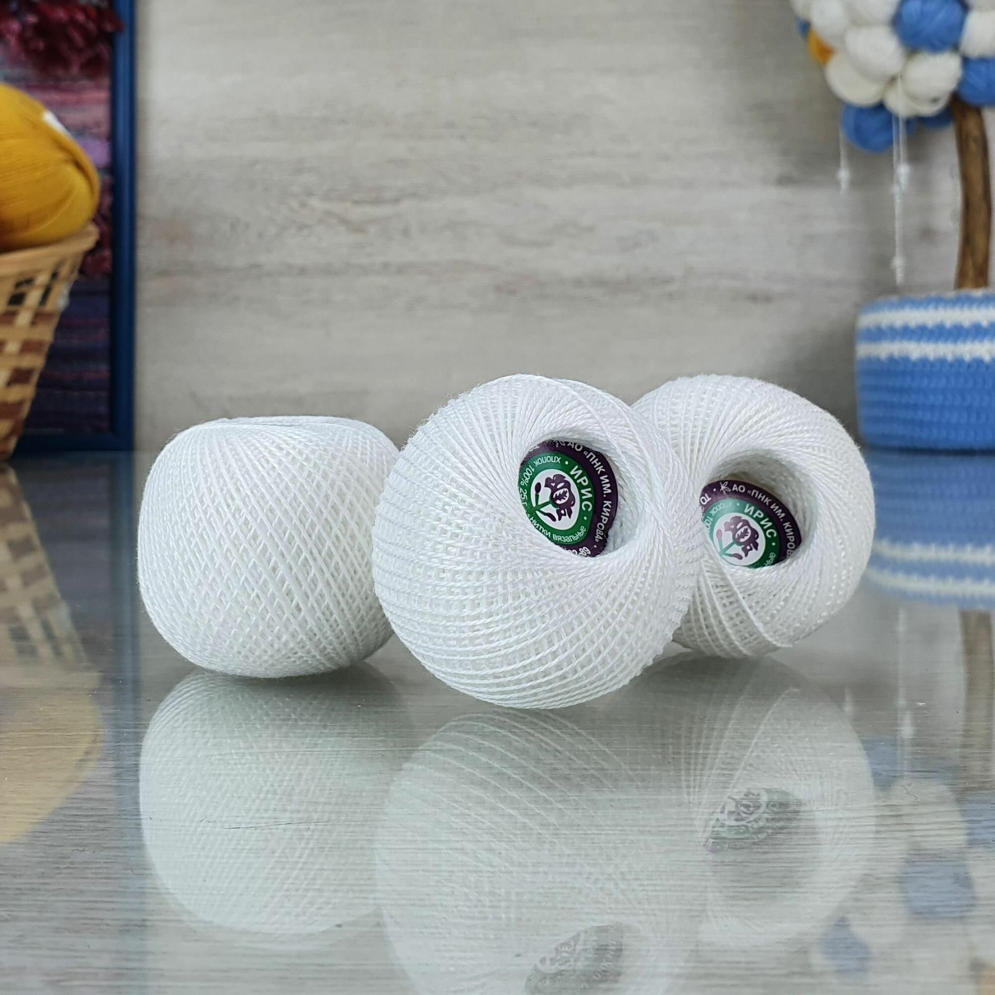 Купить Нитки вязальные "ПНК им. Кирова Ирис", 100% хлопок, 20шт, белые