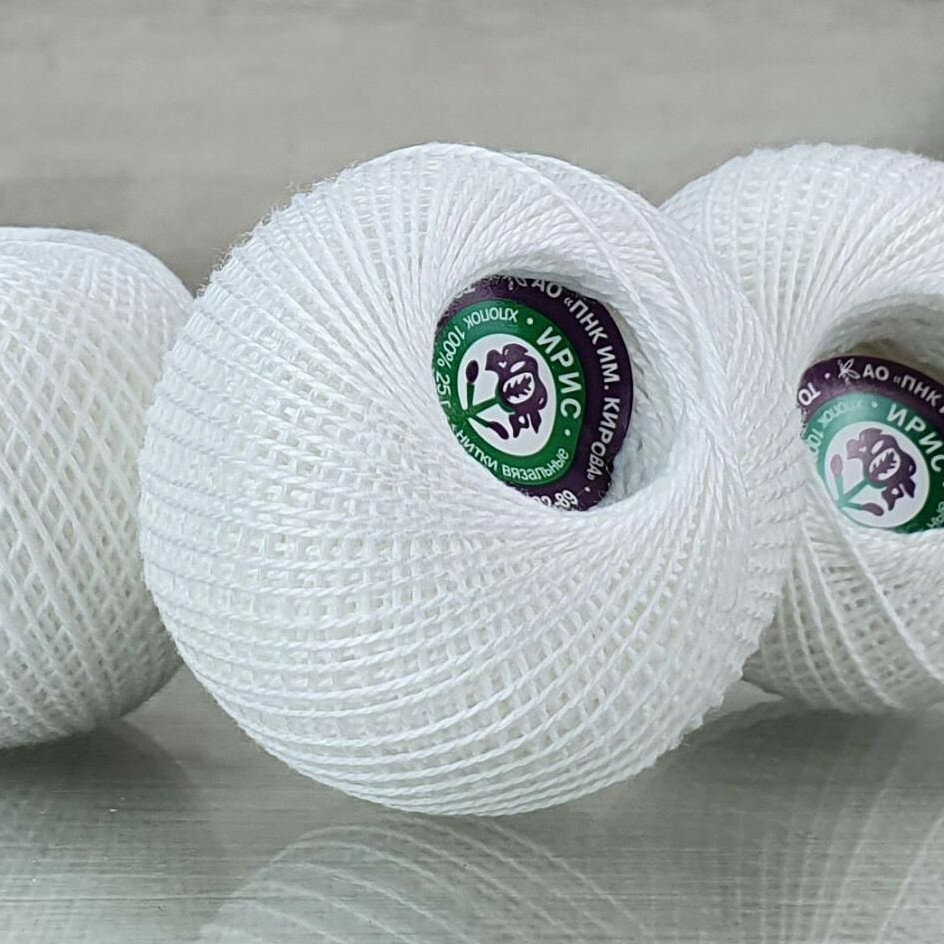 Нитки для вязания крючком ПНК им. Кирова 'ирис' (100% хлопок) 25г, 150м (0102 молочный), 20 мотков