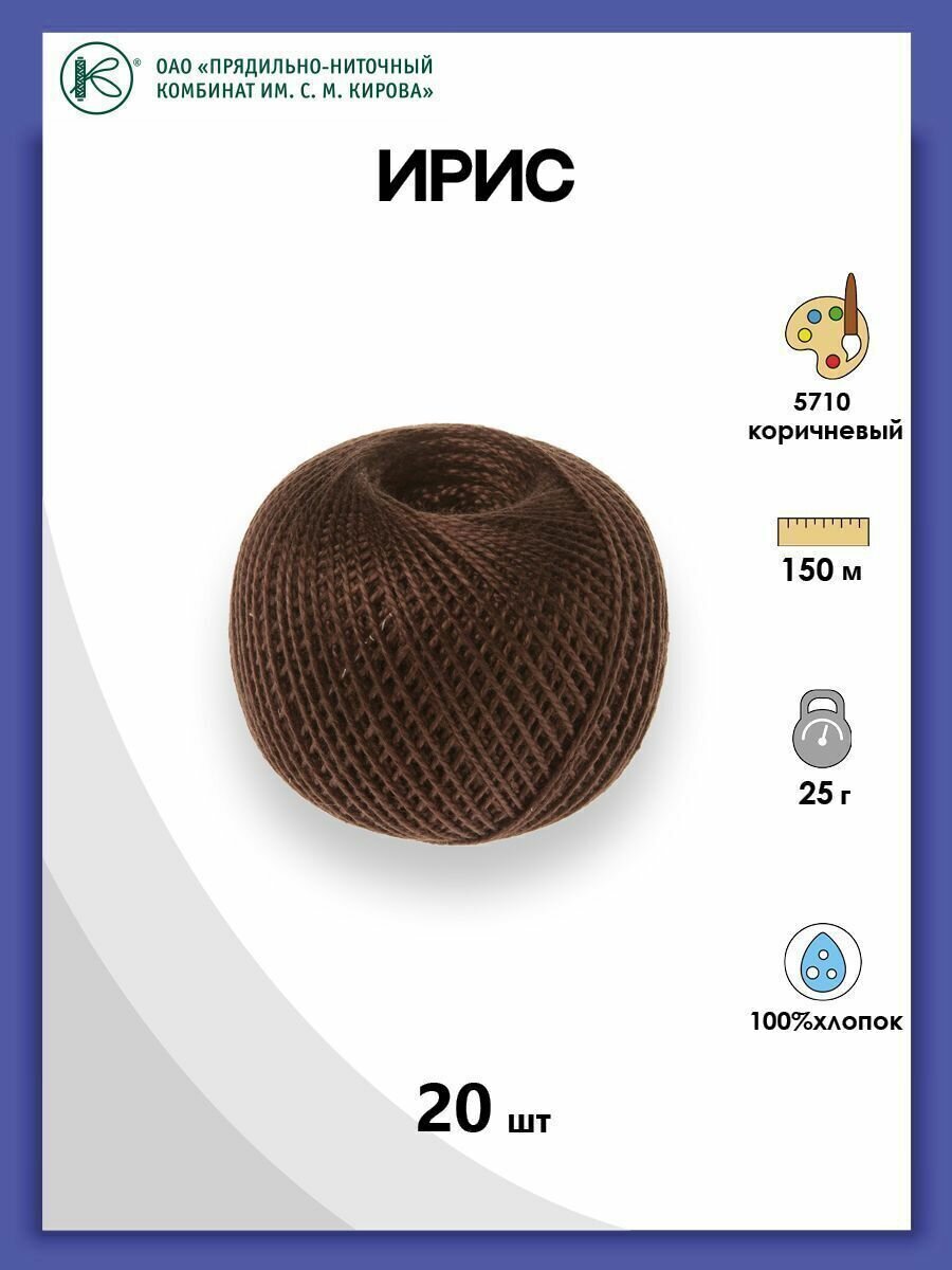Пряжа ПНК Кирова Ирис коричневый (5710), 100%мерсеризованный хлопок, 150м, 25г, 1шт
