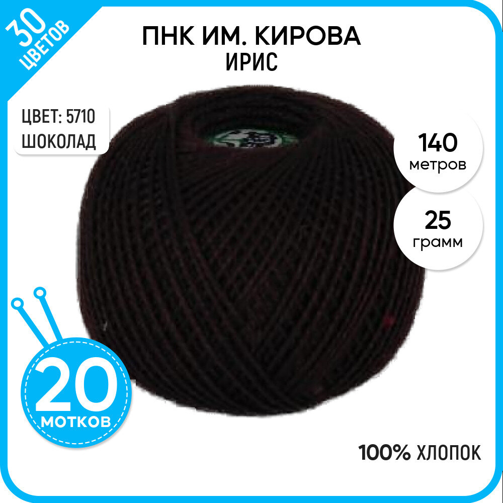 Купить Нитки для вязания крючком ПНК им. Кирова 'ирис' (100% хлопок) 25г, 150м (5710 коричневый), 20 мотков