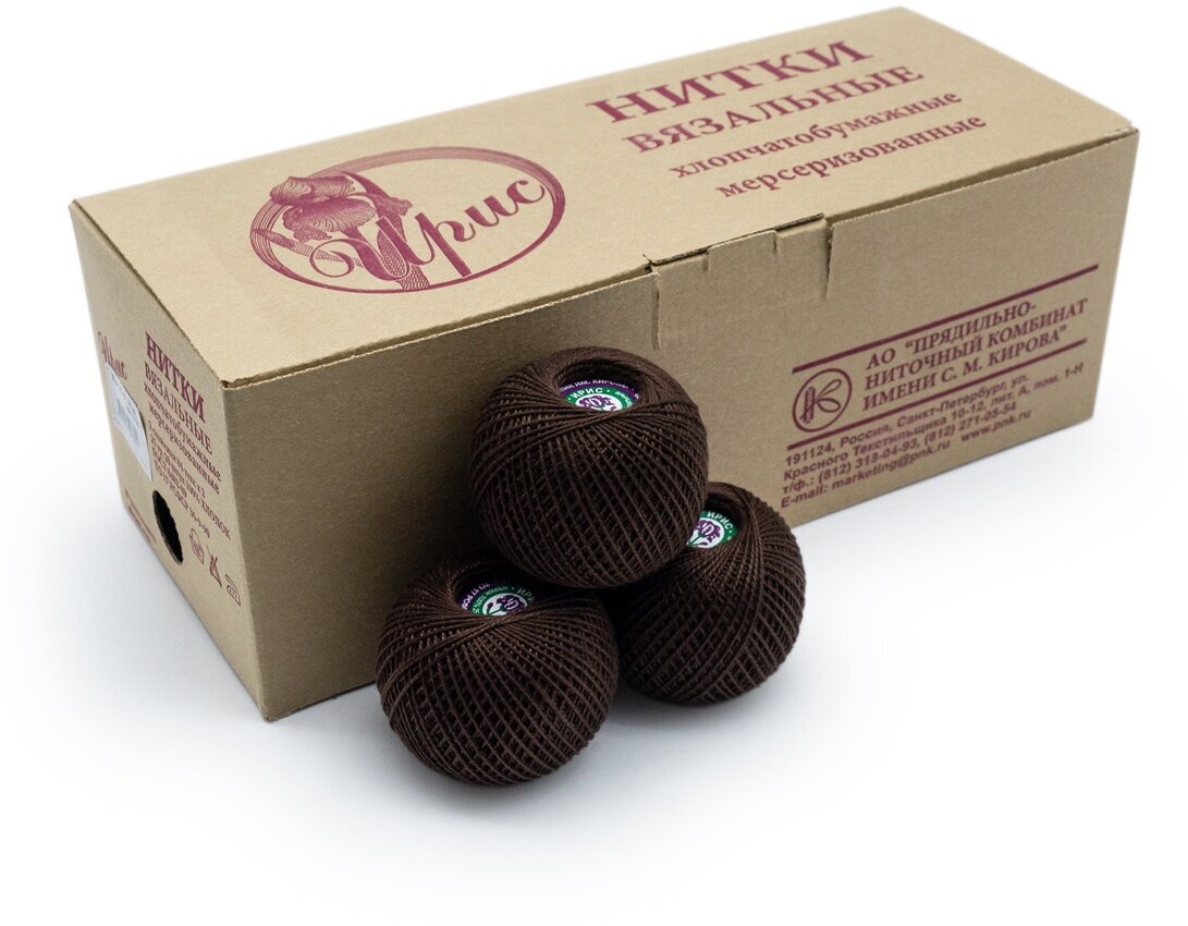 Нитки для вязания крючком ПНК им. Кирова 'ирис' (100% хлопок) 25г, 150м (6404 какао), 20 мотков