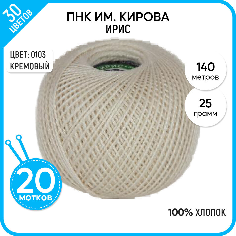 Нитки для вязания крючком ПНК им. Кирова 'ирис' (100% хлопок) 25г, 150м (0102 молочный), 20 мотков