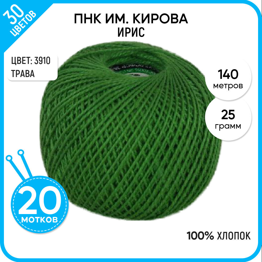 Нитки вязальные ПНК Кирова Ирис", 100% хлопок, 20 шт по 25 г, 150 м, цвет 4506, зеленый (ирис.4506)