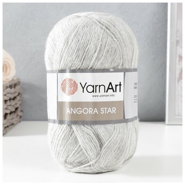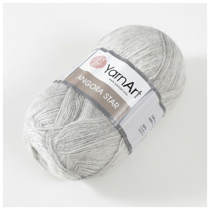 Пряжа YarnArt Angora Star (Ярнарт Ангора Стар) Нитки для вязания, 100г, 500м, 20% шерсть 80% акрил, цвет 282 св.серый, 1 шт.