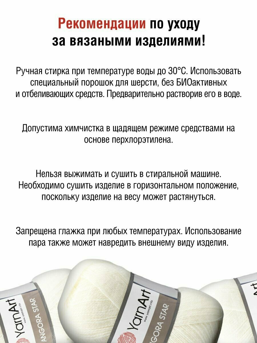 СохранитьПряжа для вязания YarnArt 'Angora Star' 100г, 500м (20% тонкая шерсть, 80% акрил) (502 молочный), 5 мотков интересное: