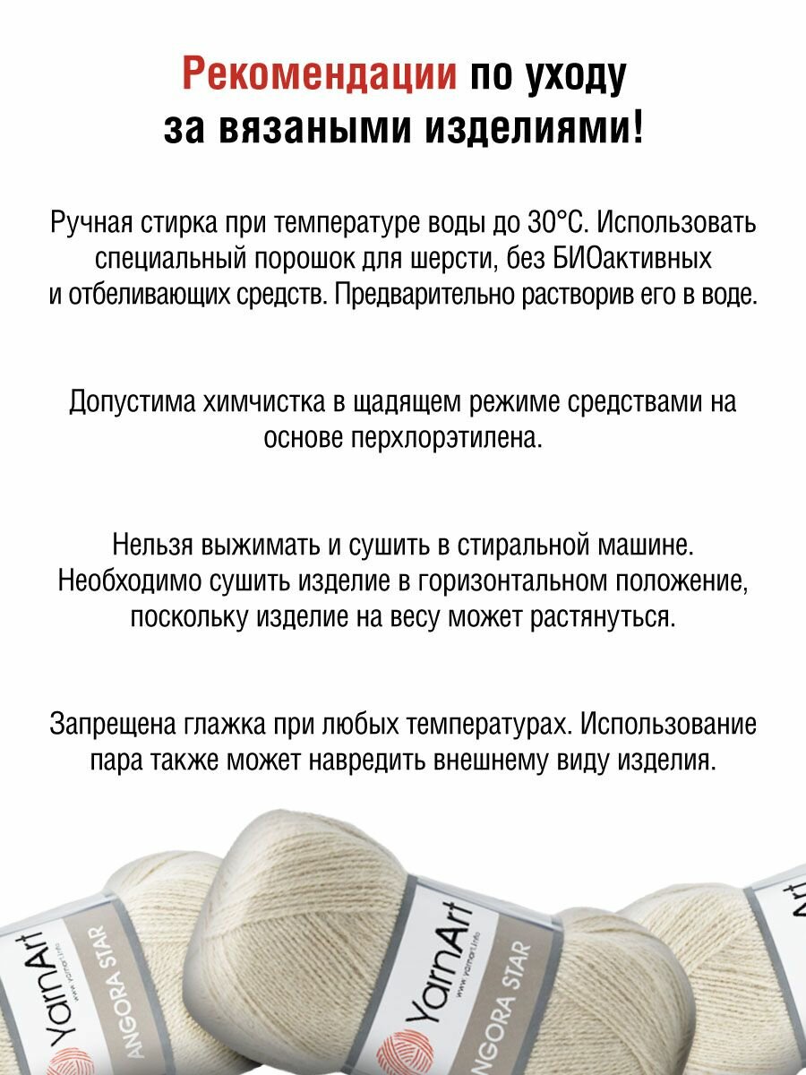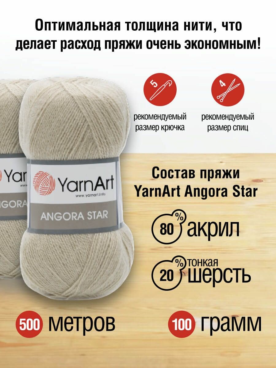 Пряжа для вязания YarnArt 'Angora Star' 100г, 500м (20% тонкая шерсть, 80% акрил) (7003 кремовый), 5 мотков