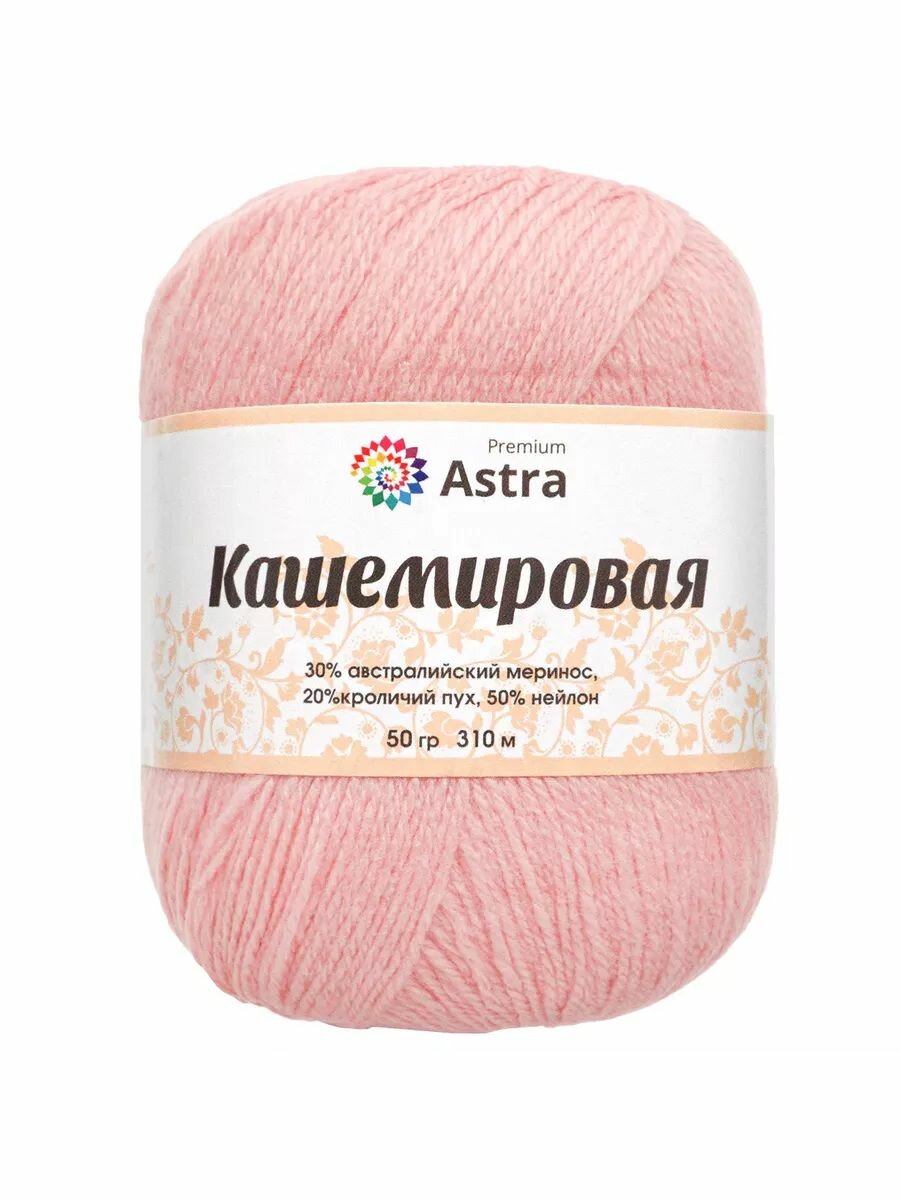 Пряжа для вязания Astra Premium 'Кашемировая' (Cashmere), 50г, 310м (20% кроличий пух, 30% австралийский меринос, 50% нейлон) + нить 20г (114 светло-розовый)