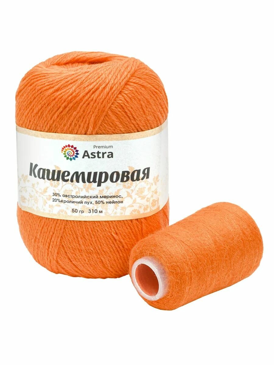 Пряжа для вязания Astra Premium 'Кашемировая' (Cashmere), 50г, 310м (20% кроличий пух, 30% австралийский меринос, 50% нейлон) + нить 20г (260 оранжевый тигр)