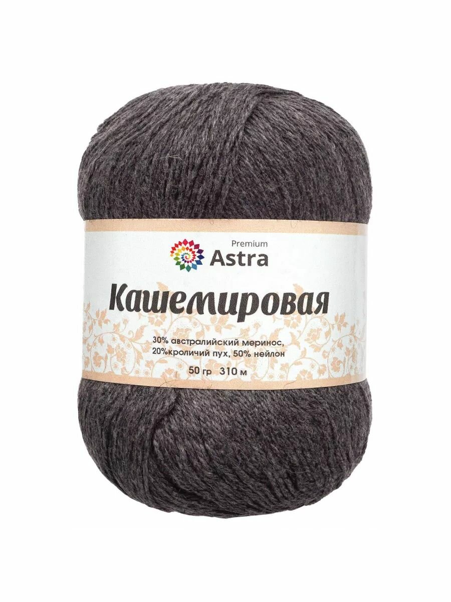 Пряжа для вязания Astra Premium 'Кашемировая' (Cashmere), 50г, 310м (20% кроличий пух, 30% австралийский меринос, 50% нейлон) + нить 20г (986 антрацит)